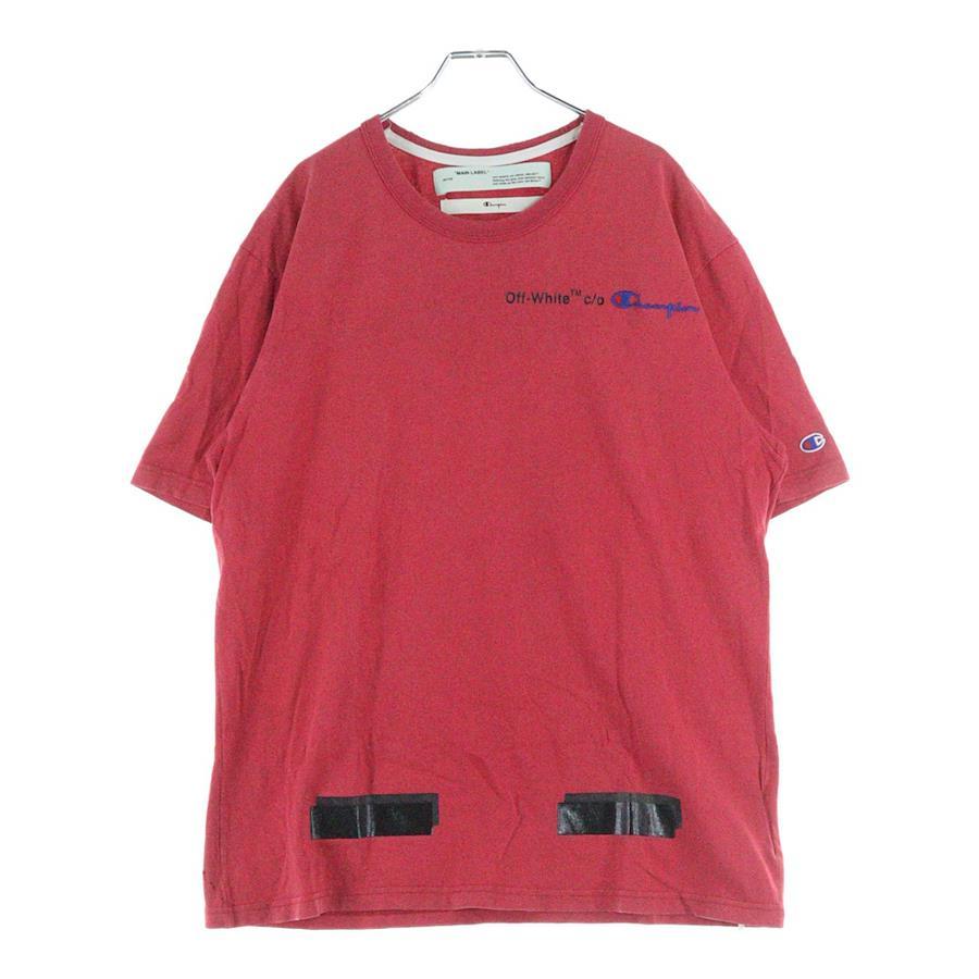 [モデル]×Champion チャンピオン ロゴ刺繍 バックプリント クルーネック半袖Tシャツ カットソー レッド OMAA029S18874050