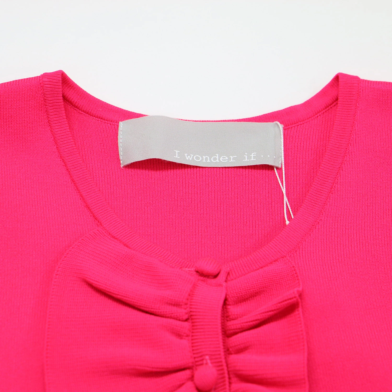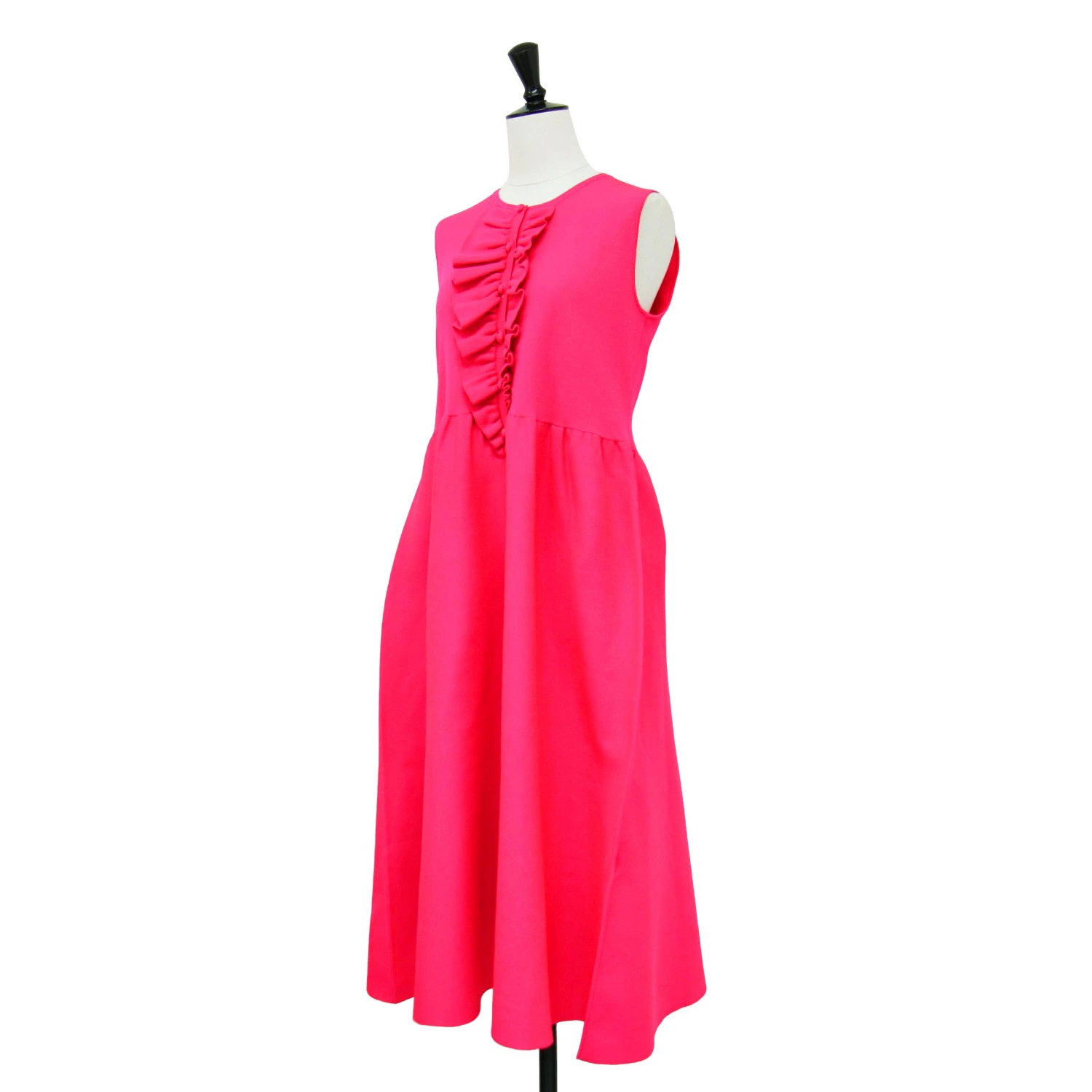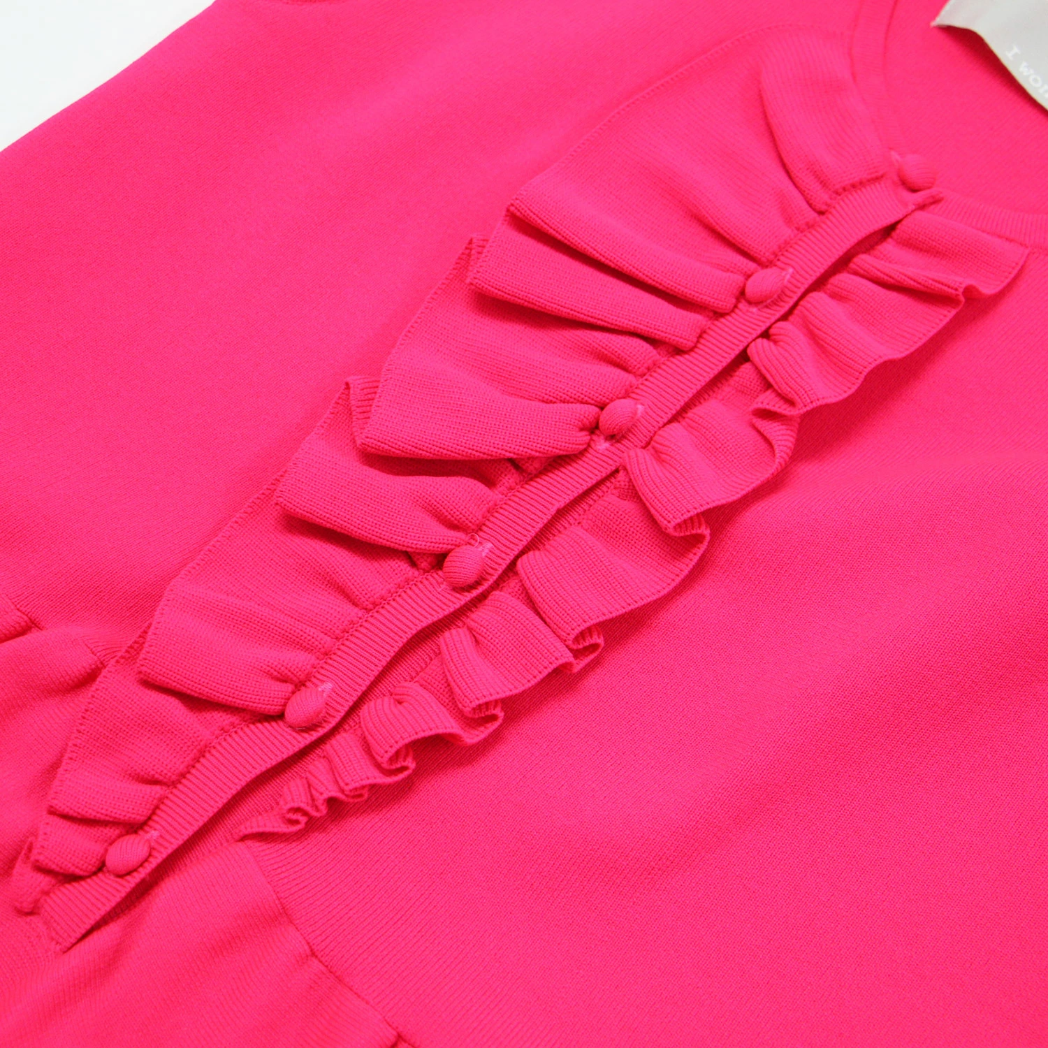 OfSTYLE Women's Pink Dress, Size 38 (M), Spring/Summer 2024, Center Ruffle Sleeveless Dress, Midi Length Knit Dress with Waist Paneling, K4615
