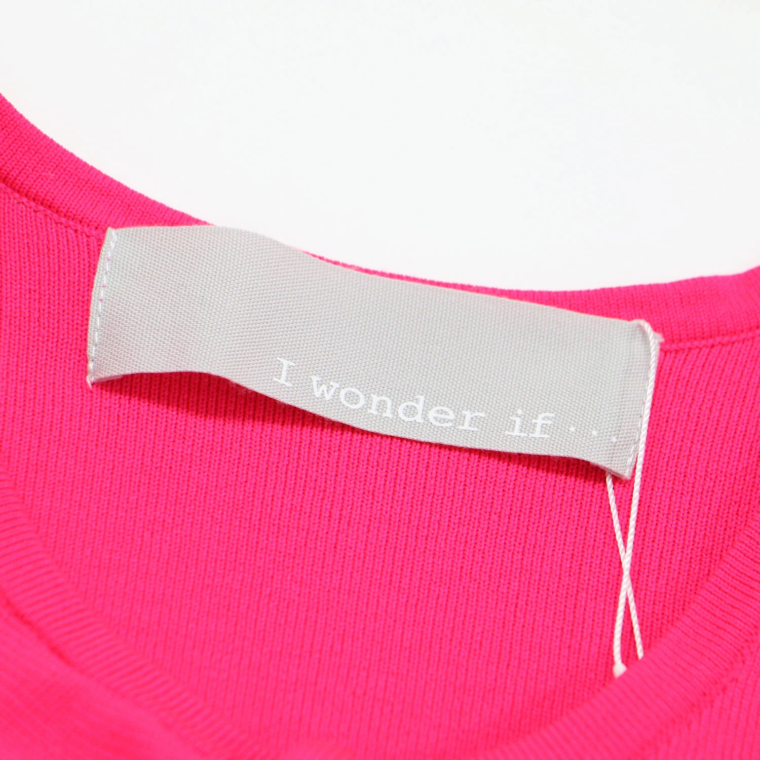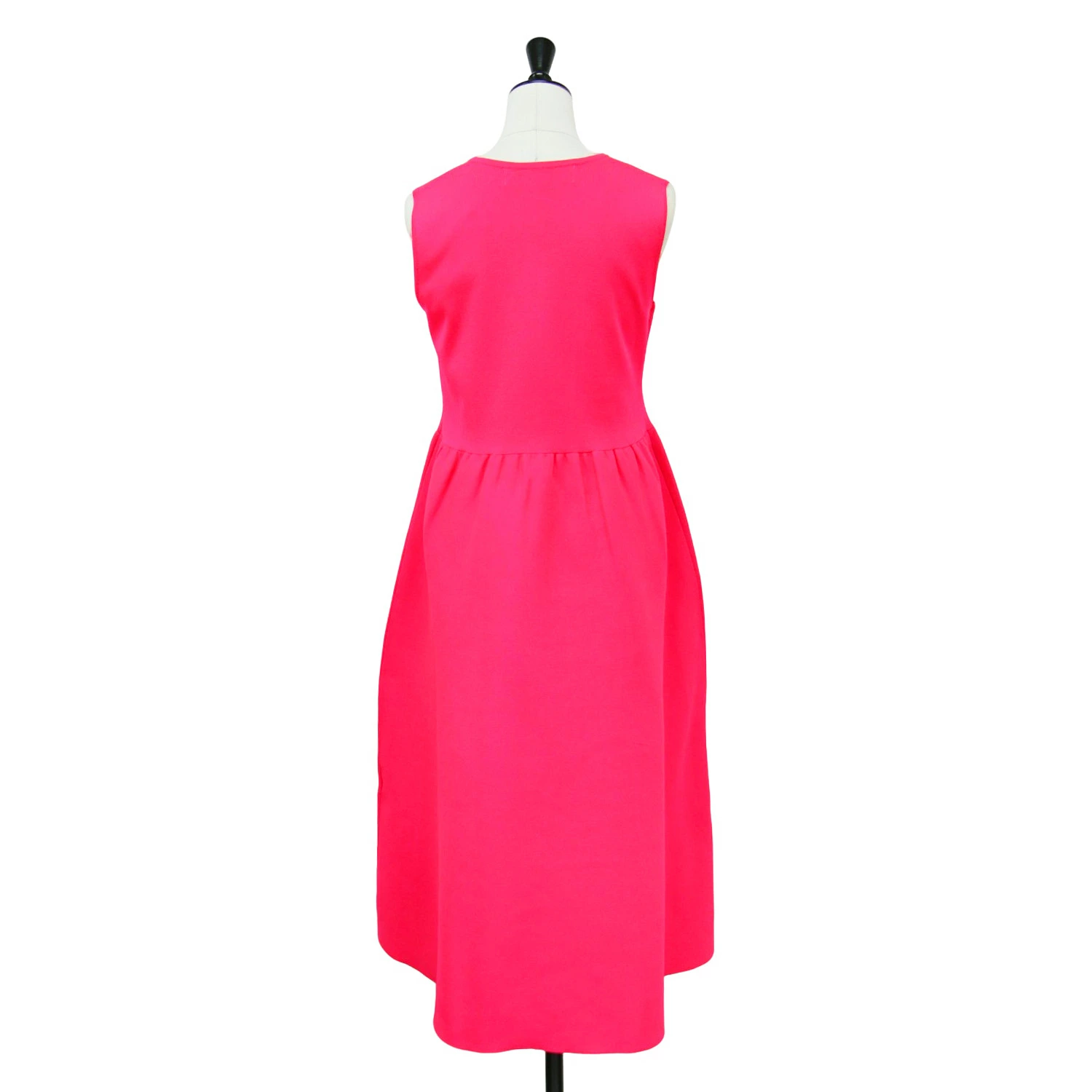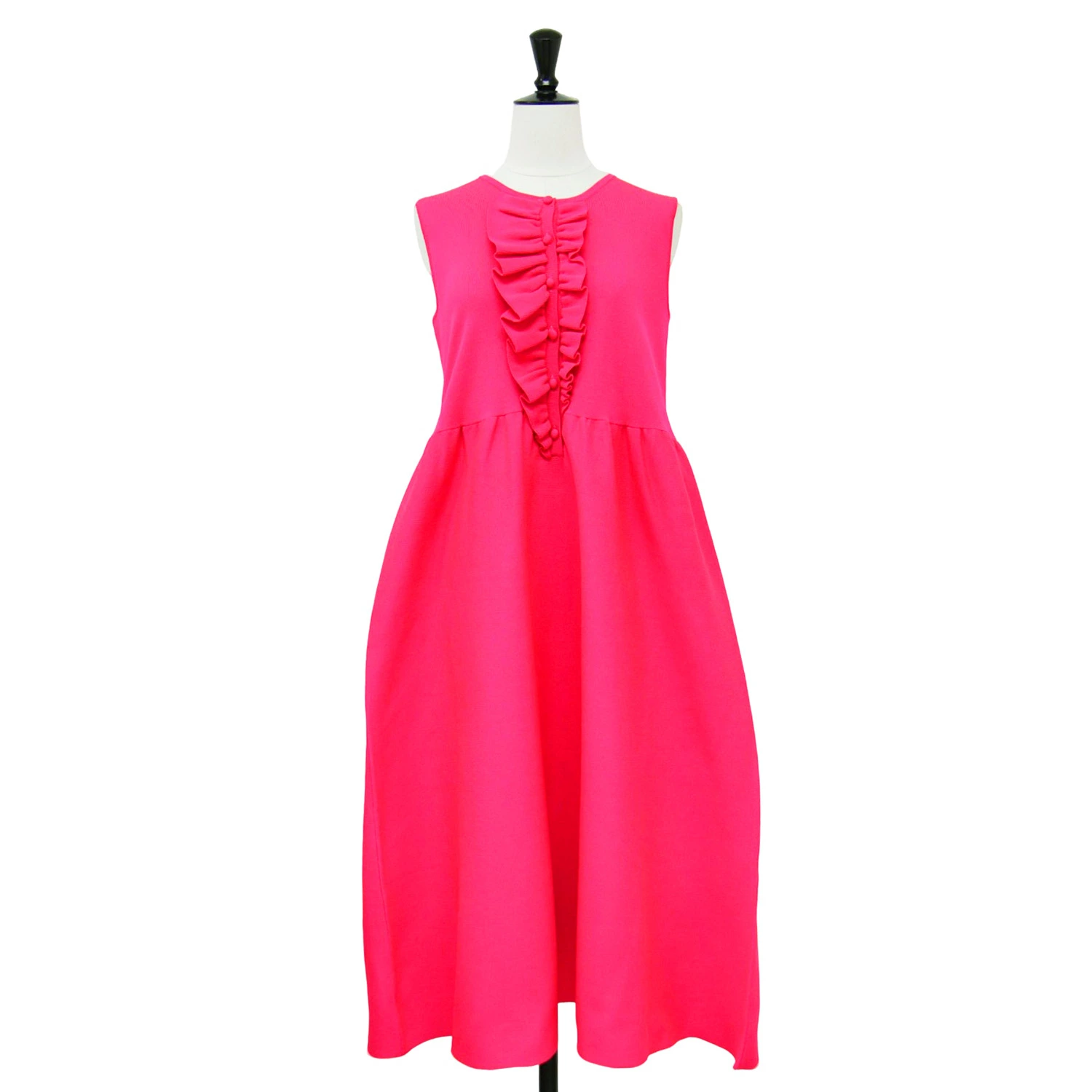 OfSTYLE Women's Pink Dress, Size 38 (M), Spring/Summer 2024, Center Ruffle Sleeveless Dress, Midi Length Knit Dress with Waist Paneling, K4615
