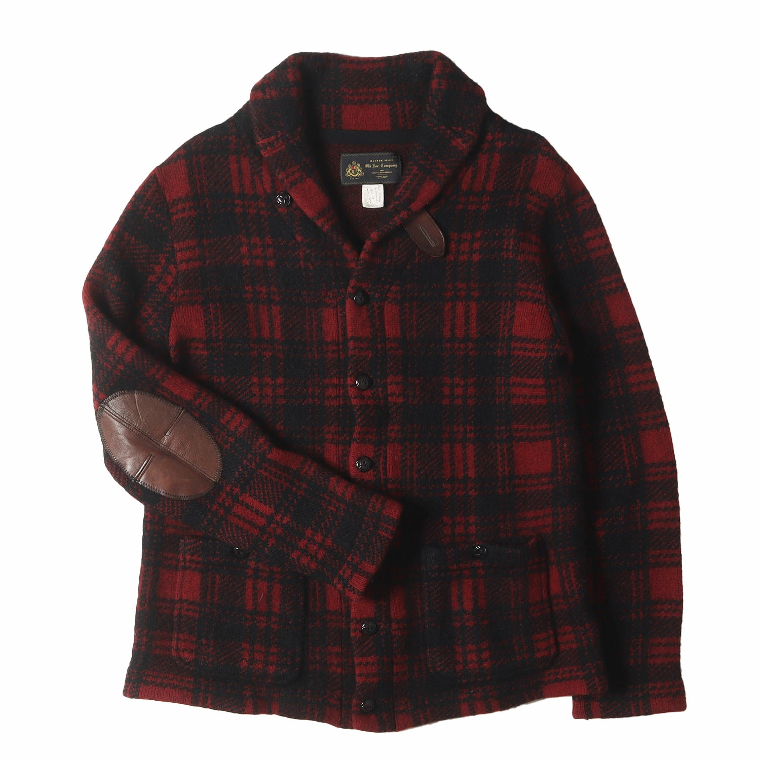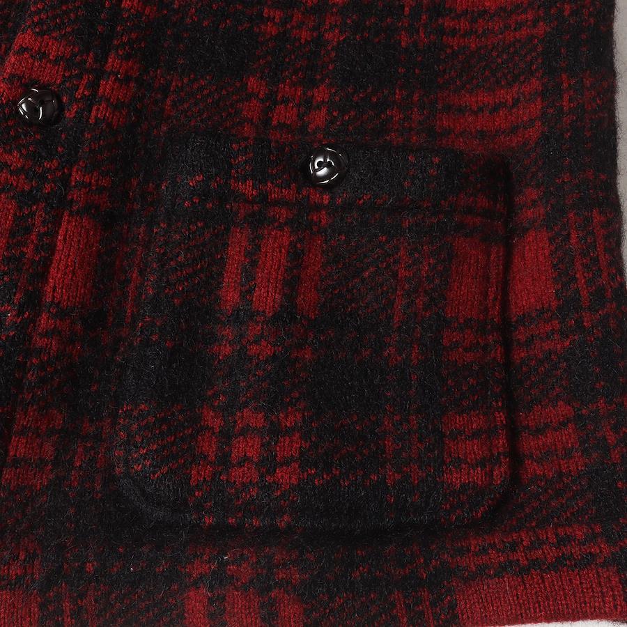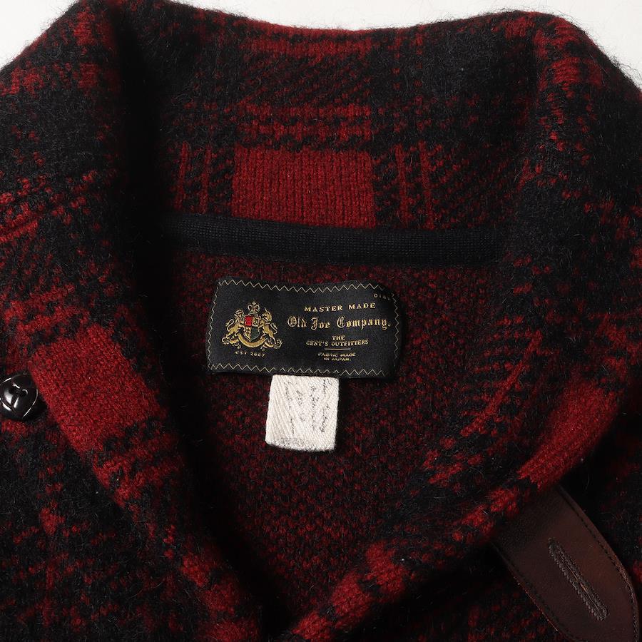 Old Joe Jacket, Red/Black, Size 38 | Check Mohair/Wool Knit Shawl Collar Jacket | Men's Outerwear, Blouson, Pre-owned, K4648