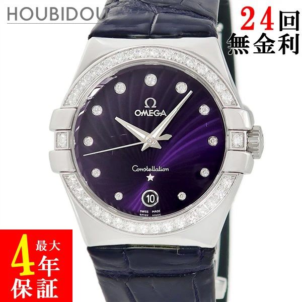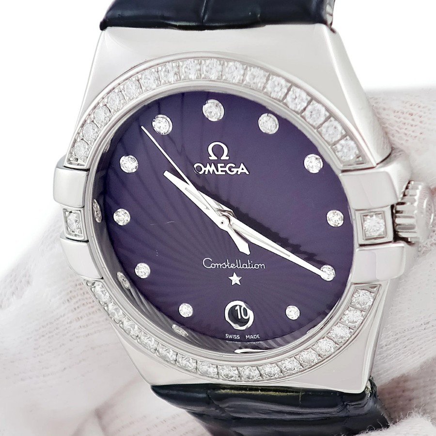 オメガ OMEGA コンステレーション 123.18.35.60.60.001 純正ダイヤ パープル デイト メンズ レディース 腕時計クオーツ パープル 【中古】【店頭受取不可】