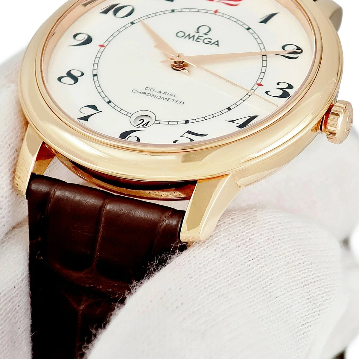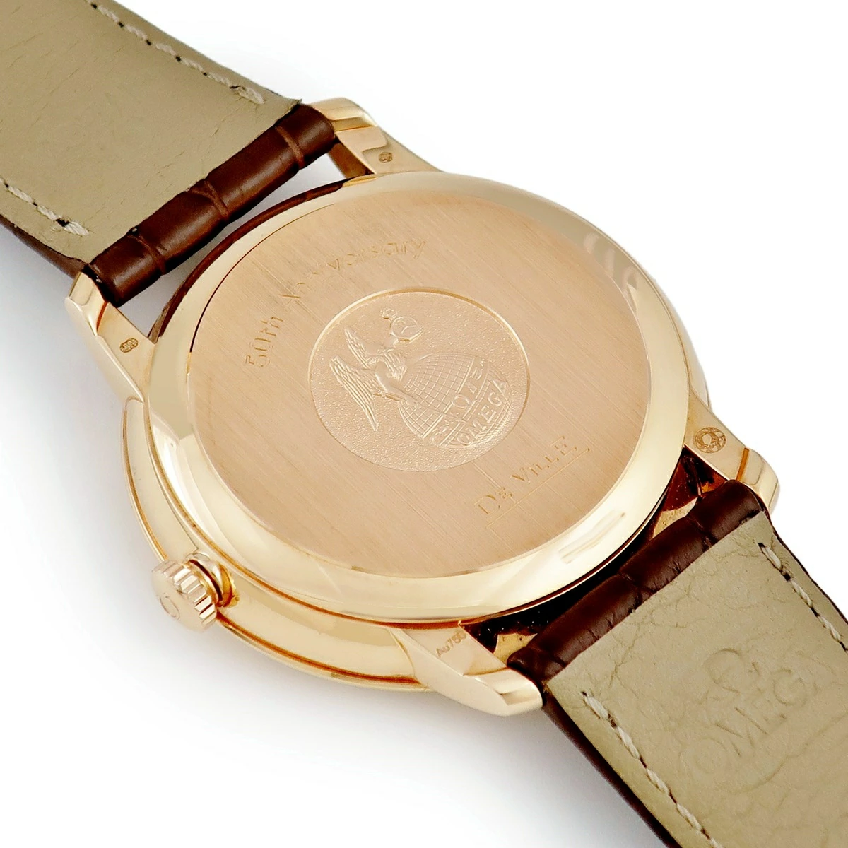 オメガ OMEGA デ ヴィル プレステージ CO-AXIAL 50周年記念 424.53.40.20.04.004 K18RG無垢 白 デイト メンズ 腕時計自動巻き ホワイト 【中古】【店頭受取不可】