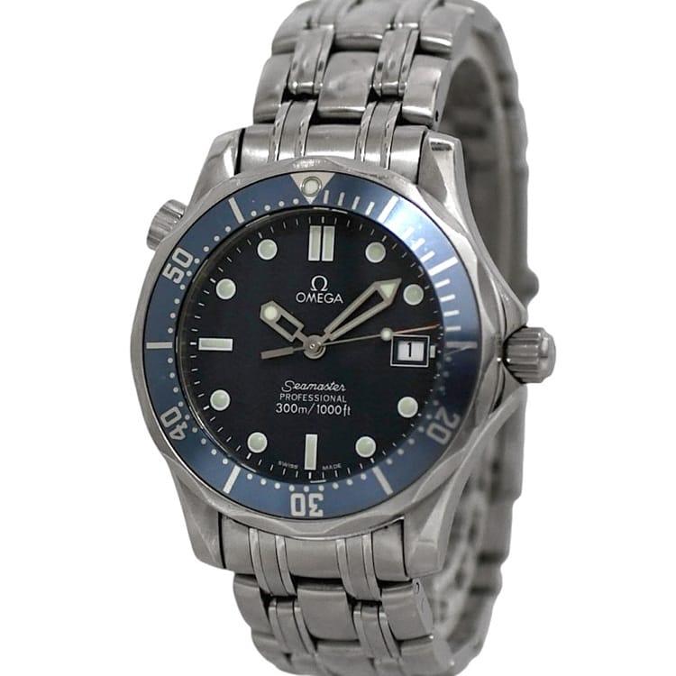 オメガ 腕時計 シーマスター 300m プロフェッショナル f-23913 ネイビー シルバー 2561-80 美品 時計 サファイアクリスタル SS 中古 クオーツ OMEGA ボーイズ 日付 QZ 電池交換済み 蛍光インデックス ダイバーズウォッチ 回転ベゼル ブランド 本物 鑑定済み
