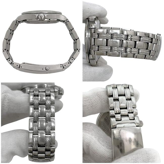 詳細説明:電池交換済み・動作確認済みの可動品です。インデックスに多少の色ヤケ、ベゼルの3時と9時位置に傷、風防3時位置やケースに傷、バックルやブレス表面に傷、裏蓋やブレス縁に小傷有、その他目立った使用感はなく比較的綺麗なお品物です。