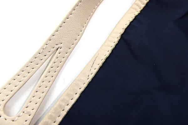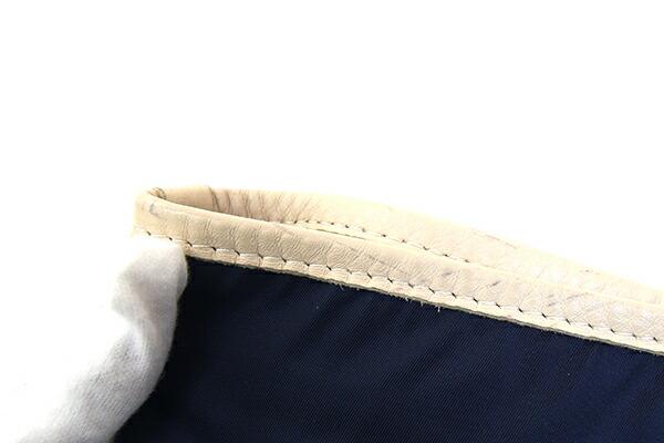 状態:外側:ナイロン地薄汚れあり。レザー部分にもスレ、薄スレ汚れあり。底面角ステッチに1針ホツレあり。内側:薄汚れあり。金具:小キズ、クスミあり。