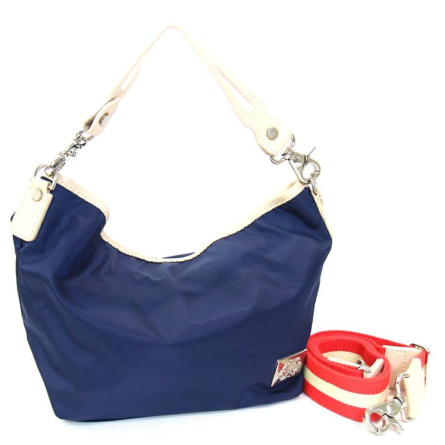 オロビアンコ2WAYハンドバッグネイビーベージュナイロンレザー中古斜め掛けショルダーバッグストライプメンズ男性Orobianco