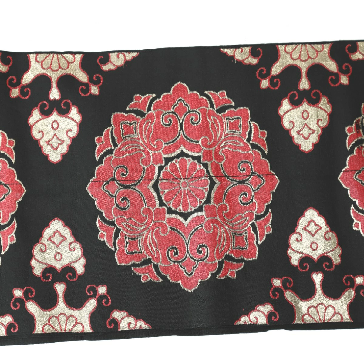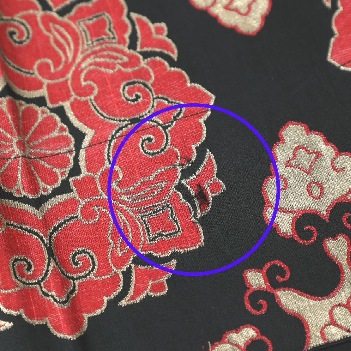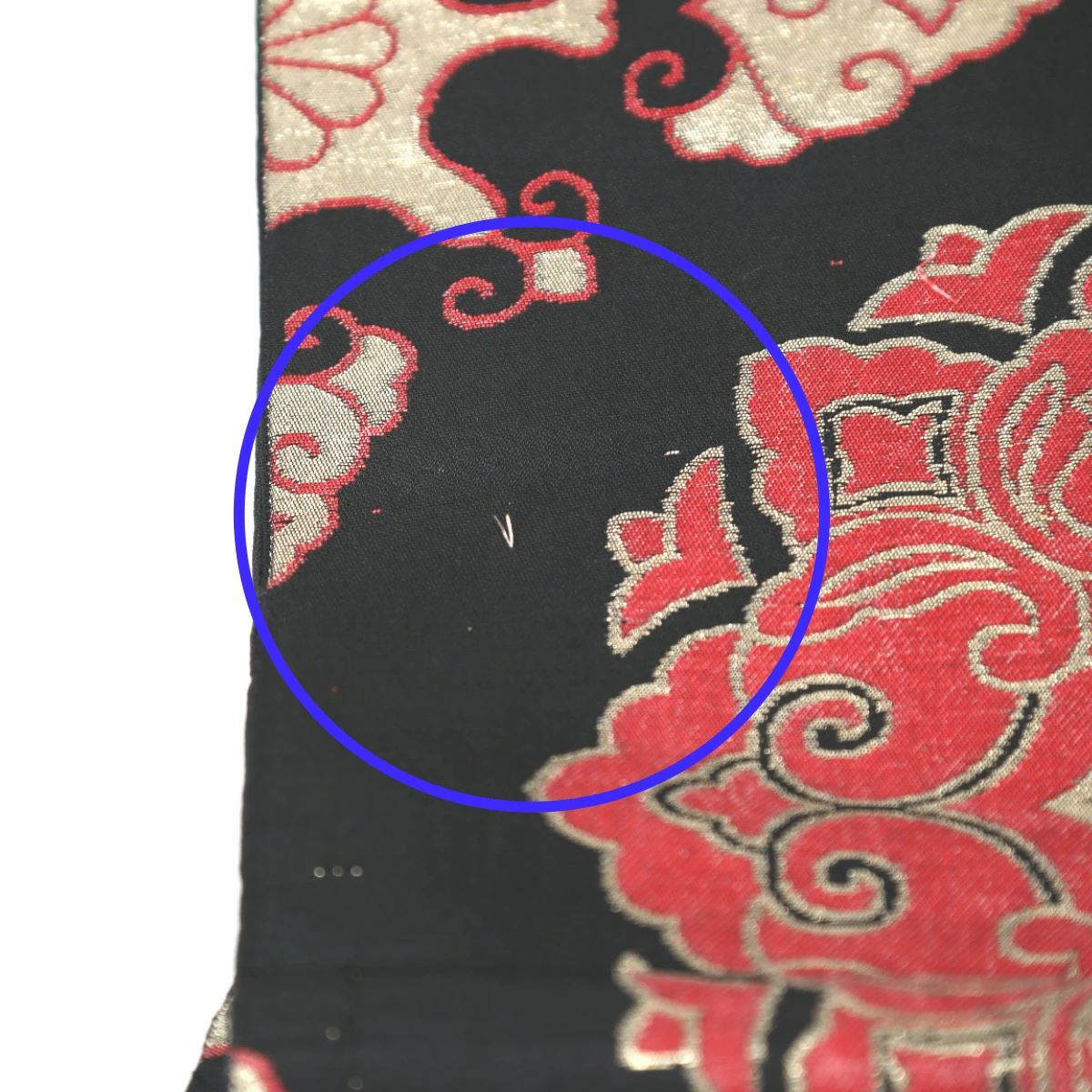 Other Obi, Kimono, Red Floral Pattern, Six-Pass Pattern, Black, [H], Used