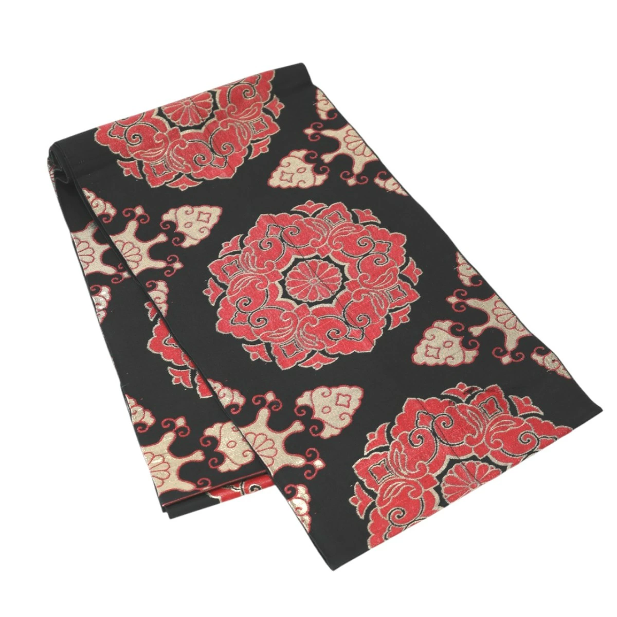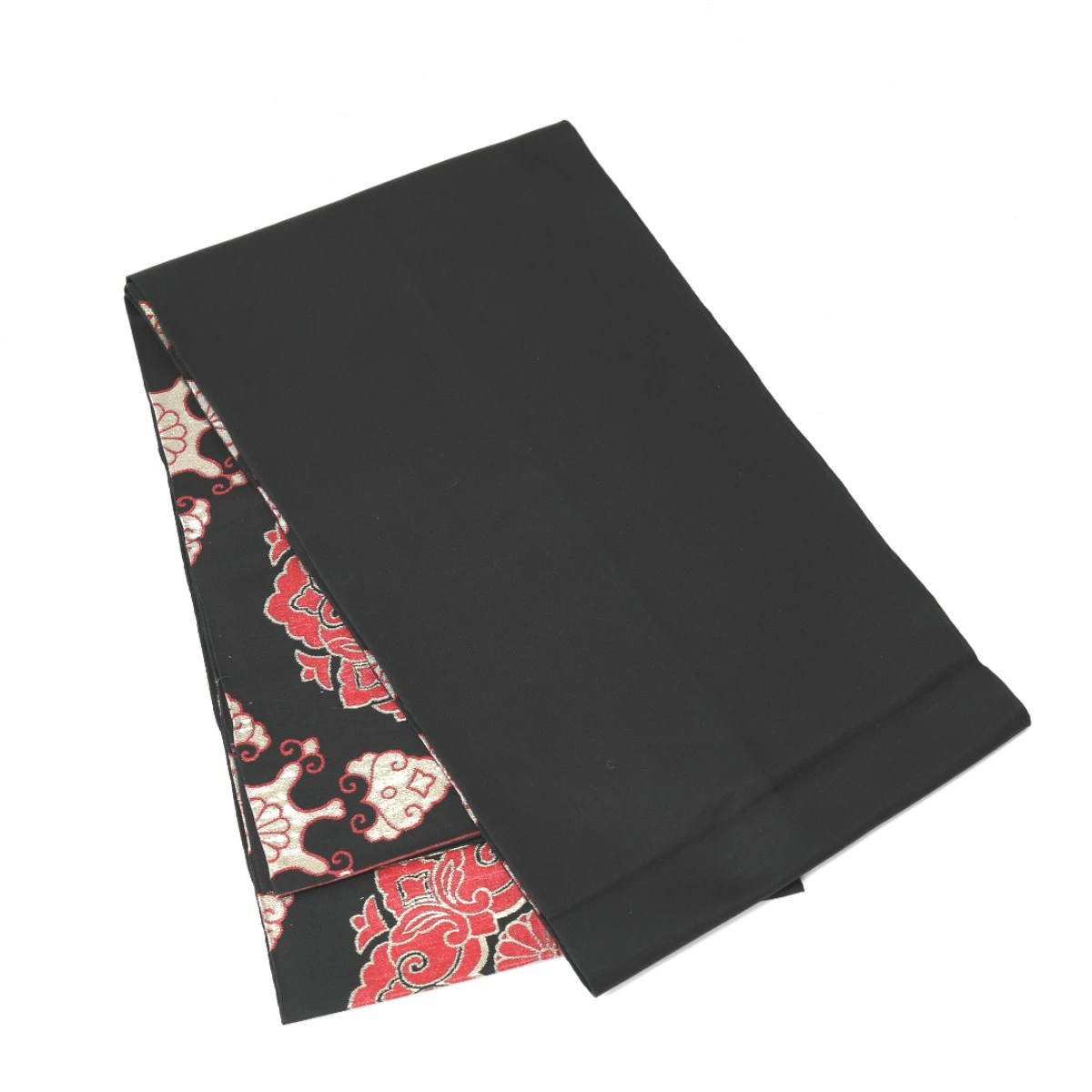 その他帯 帯 和服 着物 赤の花柄 六通柄 ブラック 【H】 【中古】