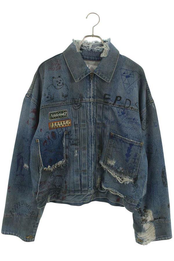 PALY Size: L 25SS 7U002Q1008 Painted Crushed Denim Jacket