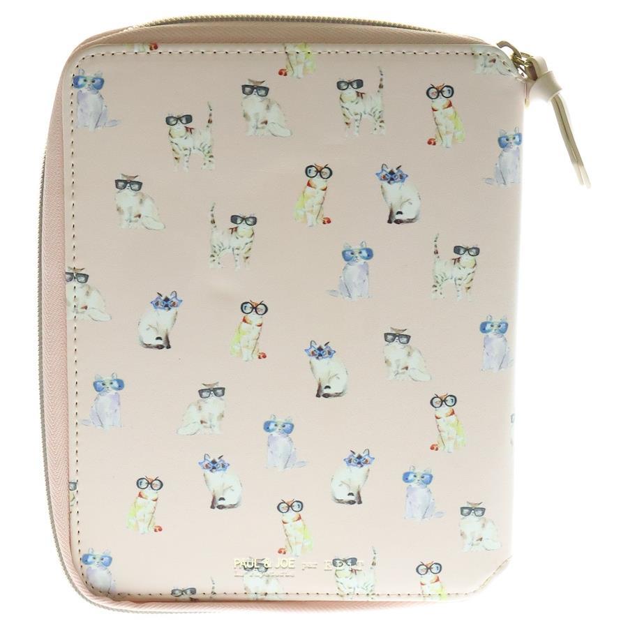 Paul & Joe logo print cat all-over print round zip notebook case/book cover, pink - pink