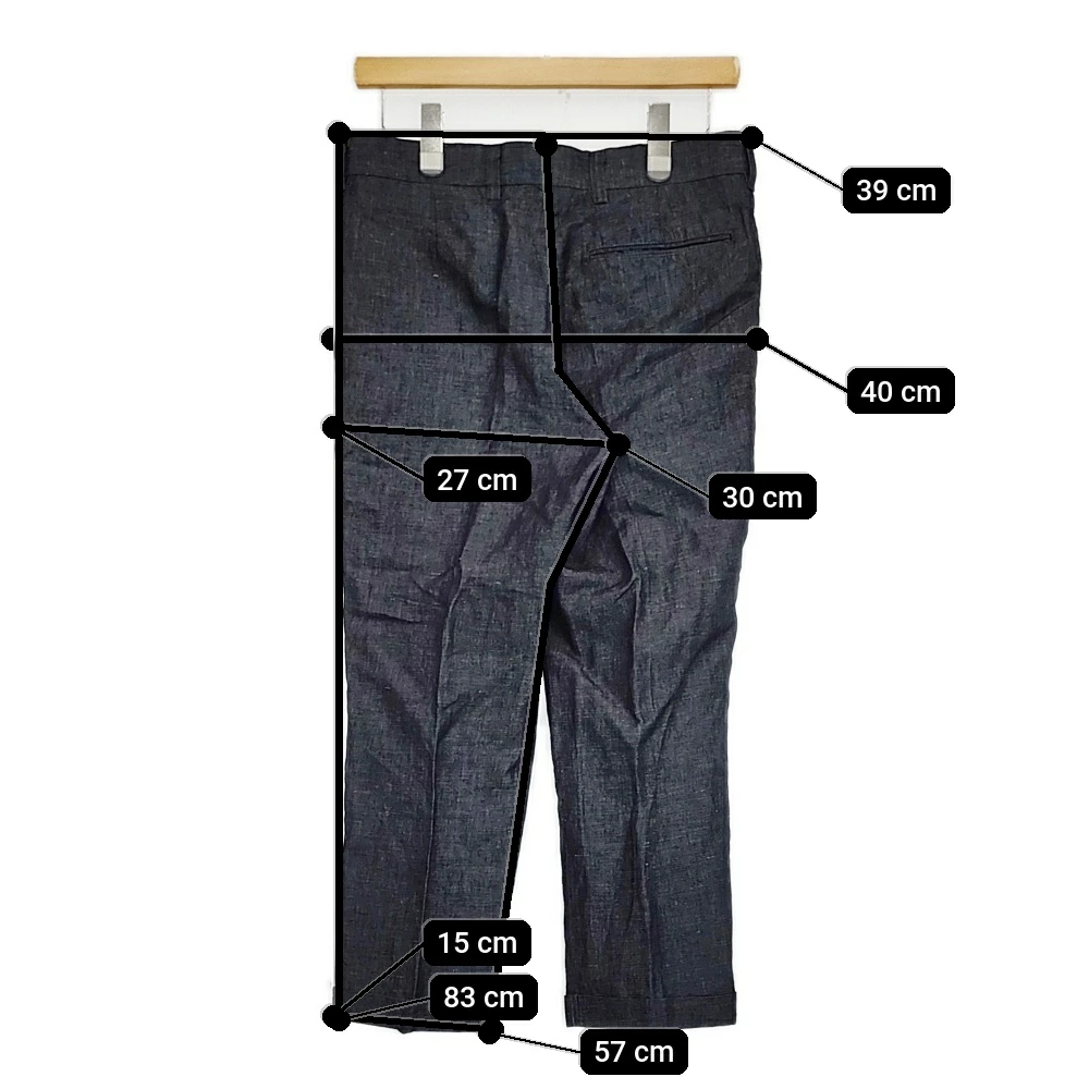 | 実寸サイズ | 総丈:約83cm ウエスト:約39cm 股上:約30cm 股下:約57cm ヒップ:約40cm ワタリ幅:約27cm 裾幅:約15cm ※採寸画像がある商品はハンガーに吊るした状態での計測のため、平置きでの採寸とは差が生じる場合がございます。平置きでの実寸サイズをご希望の場合は、ご購入前に必ずご質問ください。 ※記載以外のサイズが合わないことを理由とした返品はできませんので、 記載部分以外で実寸サイズの気になる箇所があれば必ず購入前にご質問ください。 |