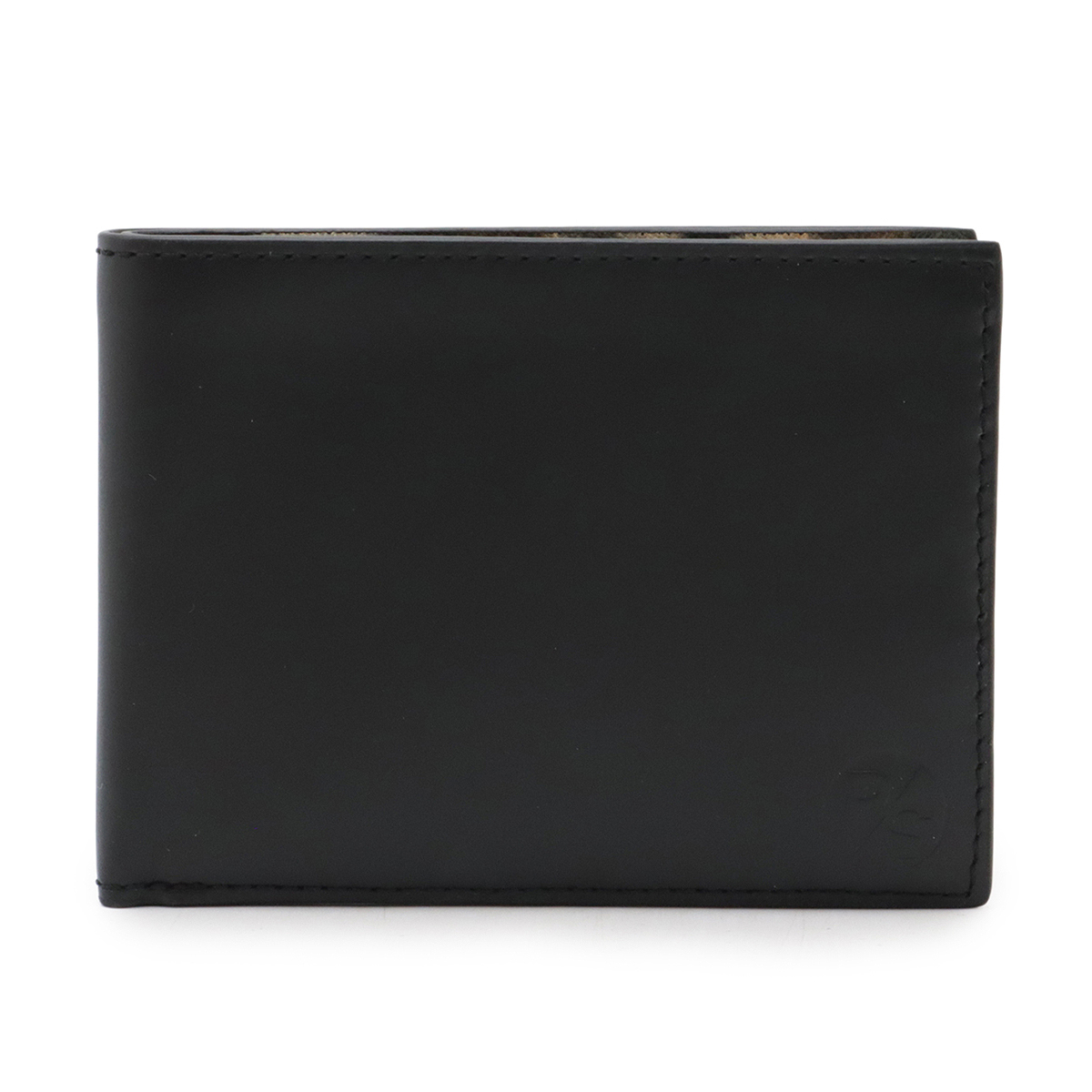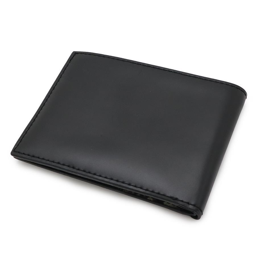 上質なレザーが高級感を演出する二つ折り札入れ。コンパクトなサイズで使い勝手の良い逸品でございます。