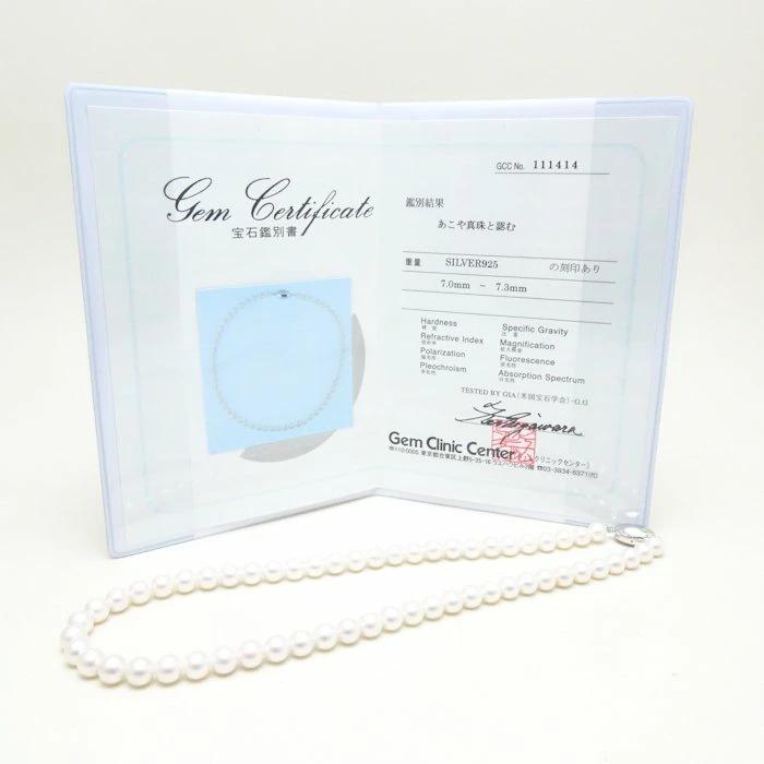| | 重量 | 33.3g | | 付属品 | 鑑別書(GCC発行) | | 備考 | アコヤ真珠 (ホワイト色系真珠 ) 7.0~7.3mm