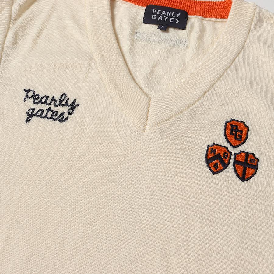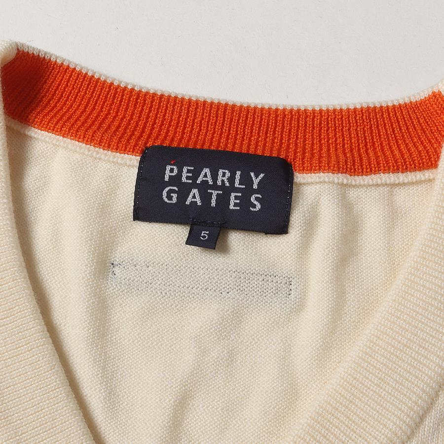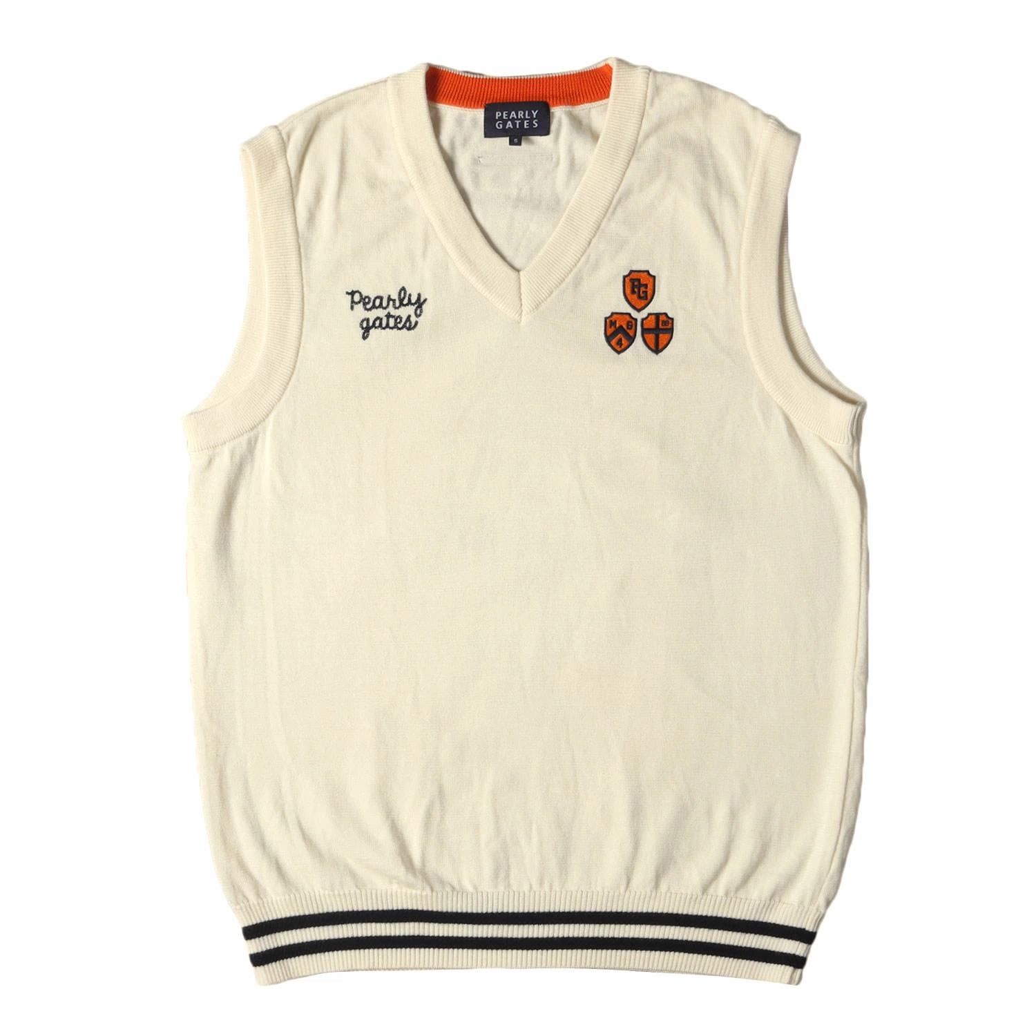 PEARLY GATES Men's Vest, Size 5, Logo Embroidery, Wool High-Gauge Knit V-Neck, Ivory, Made in Japan, Pre-Owned, K4224