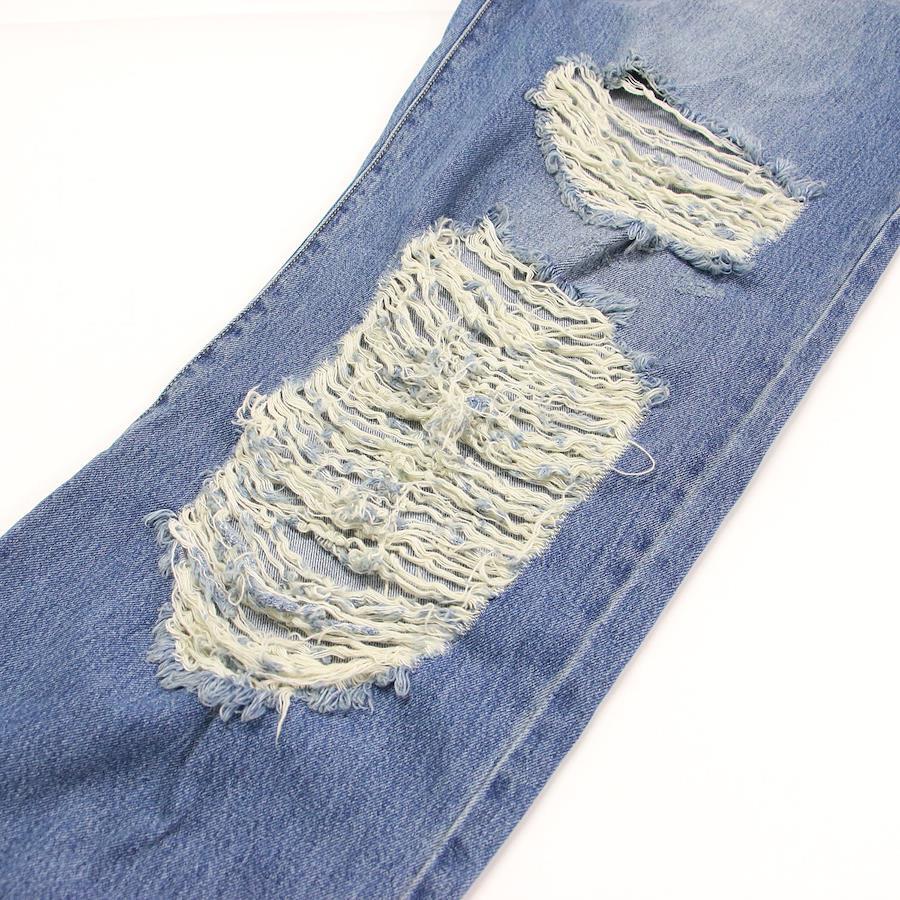 | 商品説明 | ◆膝や太ももなど随所に本格的なダメージ加工を施し、履き込んだようなヴィンテージ感で大人のカジュアルにも取り入れやすいデザイン ◆程よいゆとりを持たせたシルエットで、脚のラインを拾いすぎず、リラックスした雰囲気 ◆Tシャツやスウェットなど、シンプルなトップスと合わせるだけで、パンツの存在感が際立つ、トレンド感のあるカジュアルスタイルに◎ ・Wトップボタン ・ジッパーフライ ・5ポケット |
