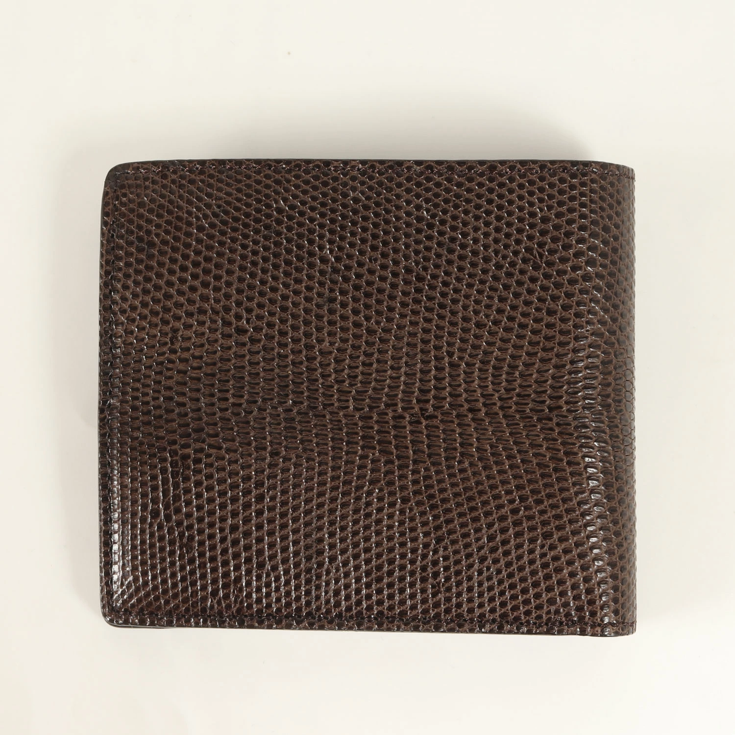 | 商品説明 | 高級感のある光沢感のリザードレザー 素材を使用した二つ折り仕様で仕上げられたウォレットです。 |