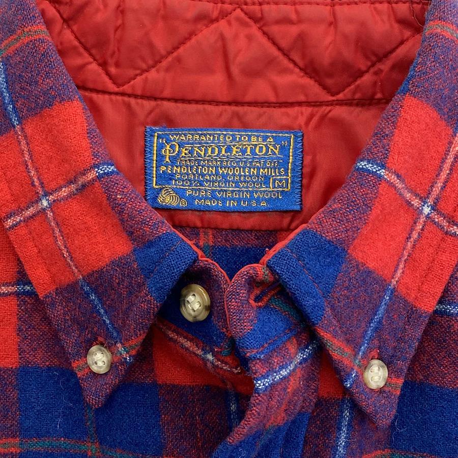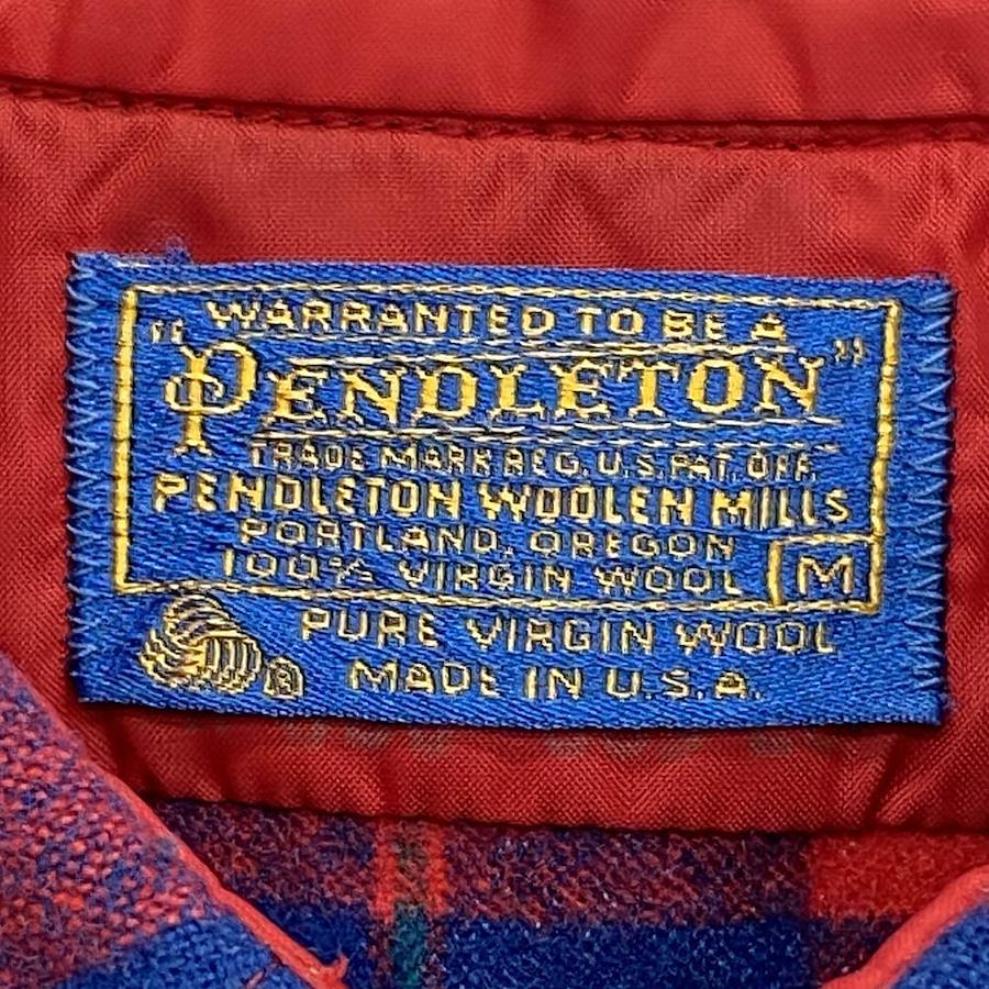 PENDLETON Vinyage 70s USA-made vintage wool check long-sleeved shirt, red, size M, men's [used clothing]