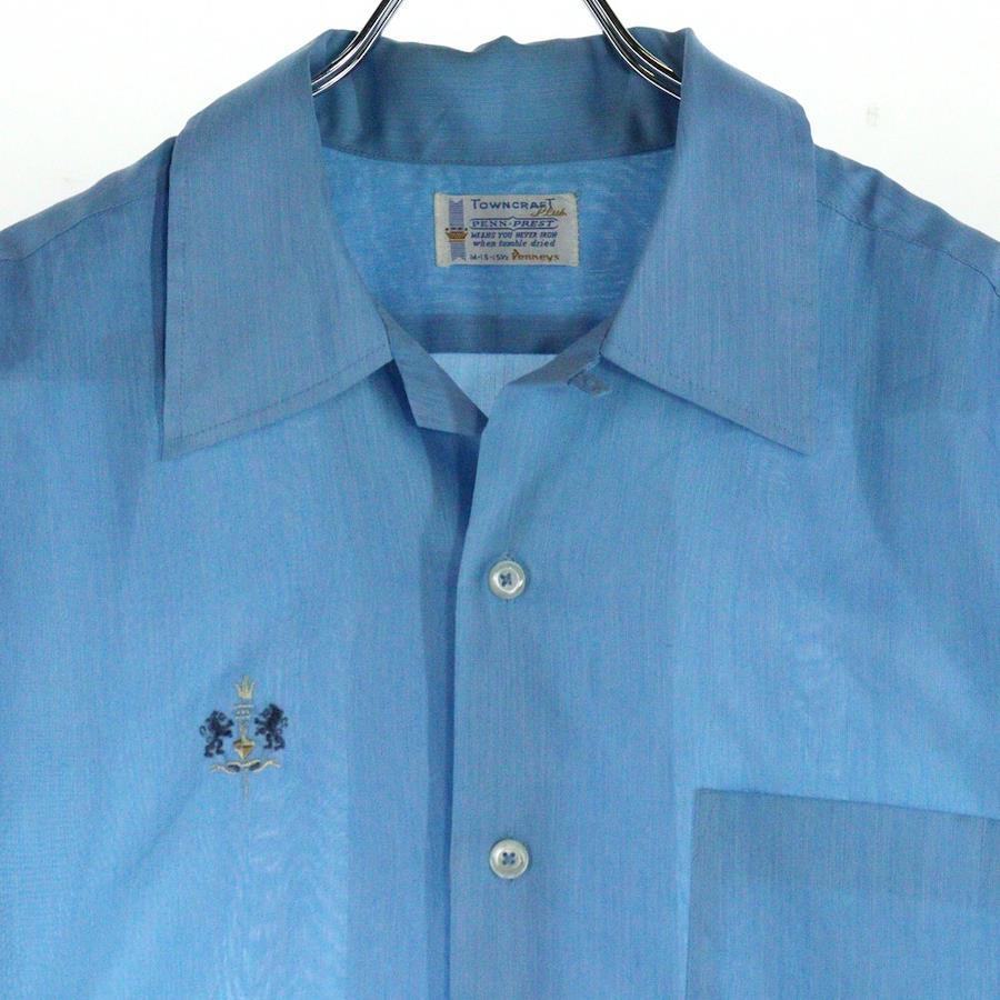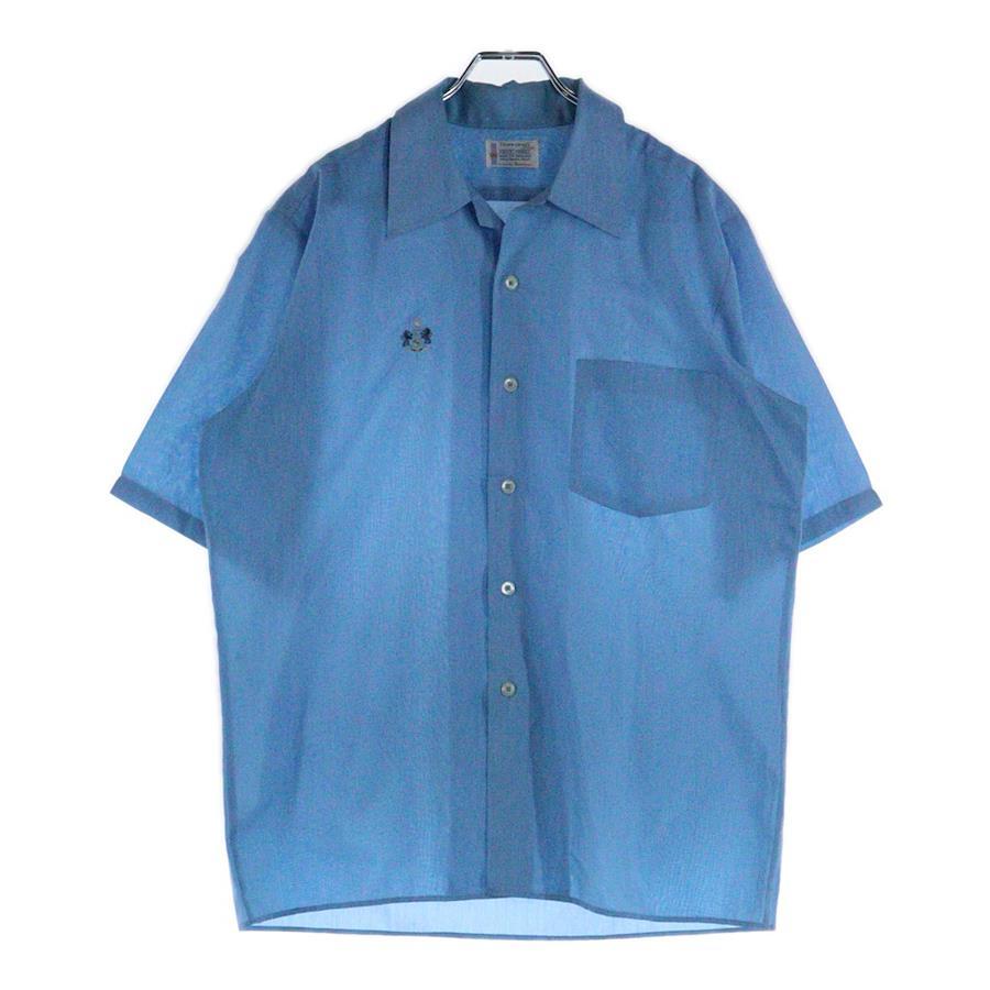 [モデル]60-70S VINTAGE ヴィンテージ 胸ワンポイント刺繍 コットンオープンカラー半袖シャツ ブルー