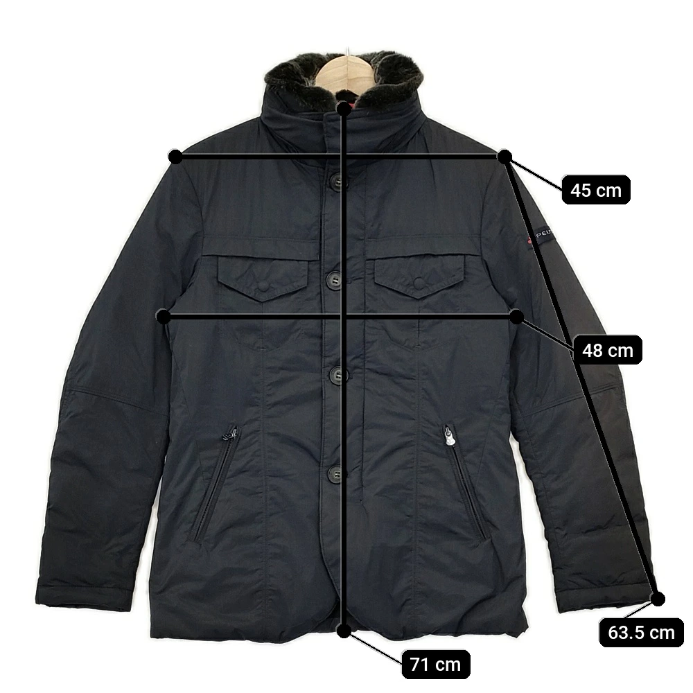 PEUTEREY Men's Navy Down Jacket with Rabbit Fur Collar (Product Code: 47253100) - Pre-owned. Product Code: 5-1020A