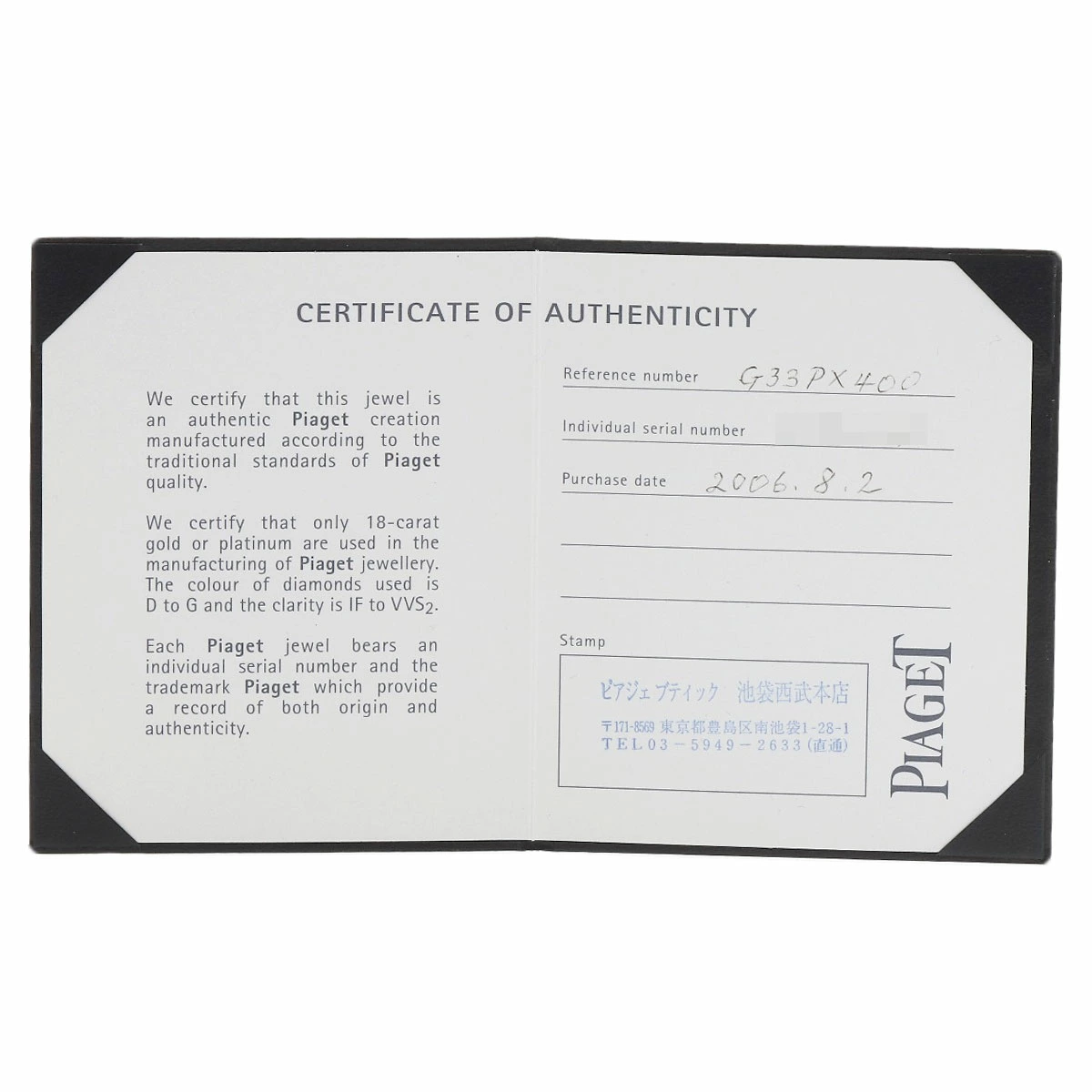 | 付属品 | ピアジェ保証書 |