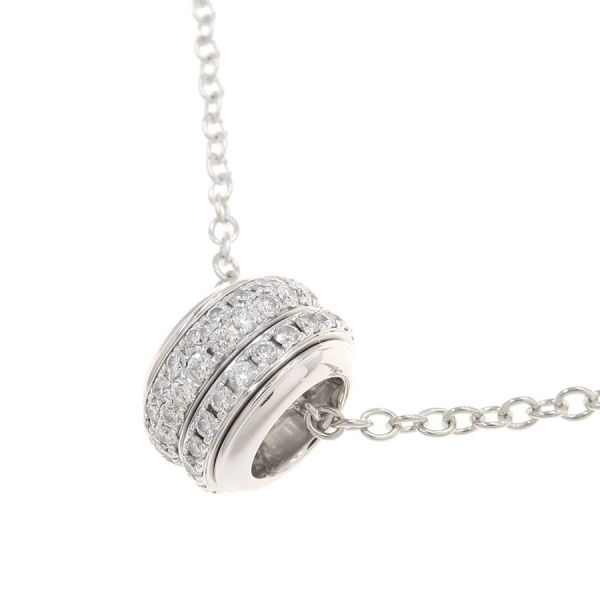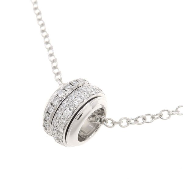 ピアジェより、ポセションダイヤネックレスが入荷しました。お馴染みの回転するサークルがデザインされたポセションモチーフ。 2種類のサークルがデザインされ、上質なダイヤモンドが華やかに輝きます。 一周にわたってダイヤモンドがセッティングされておりますので、どこから見ても豪華さと上品さを感じさせますね。 品がある大きさにホワイトゴールド素材がとてもよく合い、オシャレに身に着けられる商品です。 お馴染みのシリーズとなりますが、こちらのデザインは貴重な入荷となりますので、是非この機会をお見逃しなく。