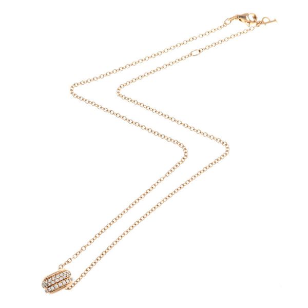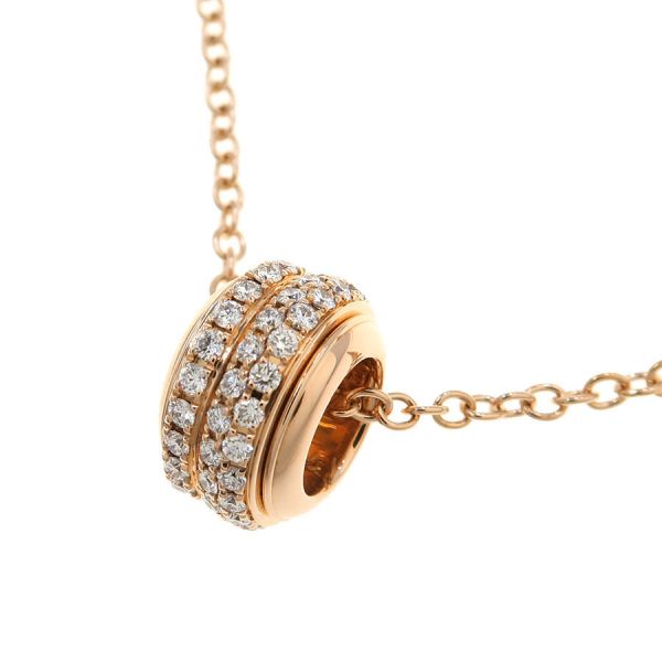ピアジェより、ポセションダイヤネックレスが入荷しました。お馴染みの回転するサークルがデザインされたポセションモチーフ。 2種類のサークルがデザインされ、上質なダイヤモンドが華やかに輝きます。 一周にわたってダイヤモンドがセッティングされておりますので、どこから見ても豪華さと上品さを感じさせますね。 品がある大きさにピンクゴールド素材がとてもよく合い、オシャレに身に着けられる商品です。 お馴染みのシリーズとなりますが、こちらのデザインは貴重な入荷となりますので、是非この機会をお見逃しなく。