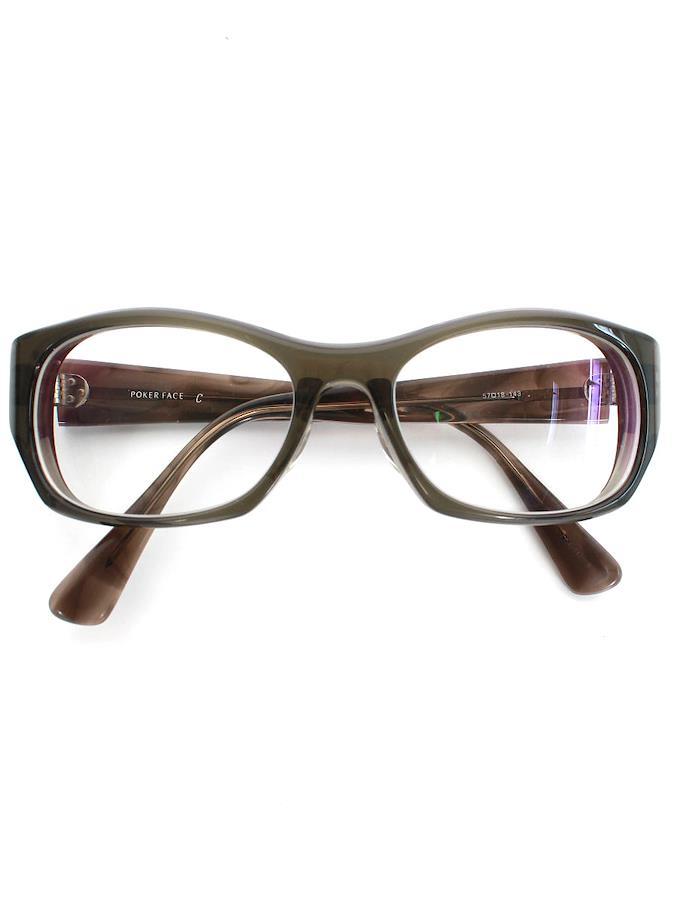 【管理番号】1792185g0215302【ブランド・アイテム】POKER FACE メガネ【性別タイプ】メンズ【表記サイズ】57 18 143【実寸サイズ】縦幅:約4.4cm横幅:約14.3cmレンズ幅:約5.6cmテンプル:約14.8cm【カラー】カーキ / ブラウン【素材】画像参照【状態の詳細】USED品ではありますが、目立つダメージや大きな汚れのないコンディションのよい美品です。【汚れ・シミ】特に目立つものはございません。【キズ】リム、テンプルの所々に薄いスレ・小傷がございます。(目立たない程度です。)【毛玉・毛羽立ち】特に目立つものはございません。【使用感】少ない〜普通 右フレームに若干の歪みがございます。ノーズパッドに若干のくすみがございます。【こんな方におススメ】USED品でも汚れやダメージが少ないお品物をお探しの方にオススメ【付属品】付属品なし【備考】度あり