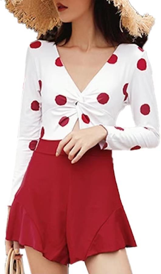 スカート風に見えてパンツタイプになっていてオシャレです。 長袖なので日焼け対策にもなり、動きやすいデザインになっております。