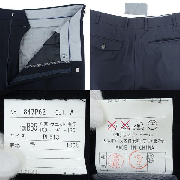 ・メーカー :POLO BCS / ポロ ビーシーエス・サイズ :【上】:-,表記サイズ:100BB5,肩幅 (約cm):48,身幅 (約cm):55,着丈 (約cm):75,袖丈 (約cm):59,【下】:-,表記サイズ:100BB5,ウエスト (約cm):92,太腿幅 (約cm):33,股上 (約cm):32,股下 (約cm):68,裾幅 (約cm):22.5,・色(柄)の系統:ネイビー・デザイン :(メンズ)スーツ・素材 :毛100%