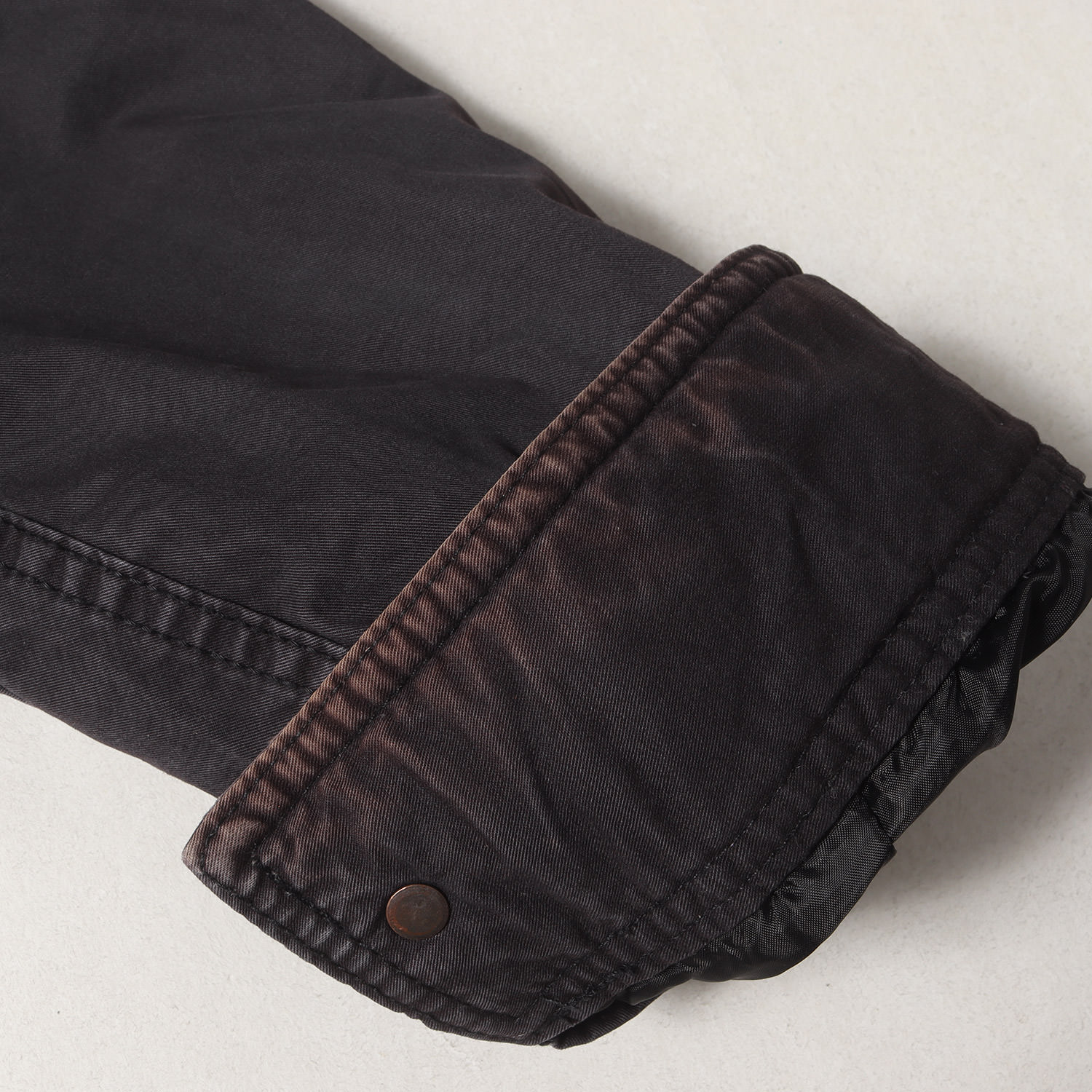| 商品説明 | ・表地 ハリのあるコットンサテン生地 ・身頃裏地 ヘリンボーンコットン生地 ・襟 コーデュロイ ・ヴィンテージ加工 ・フロント ジップ&ボタン ・CONMARジッパー |
