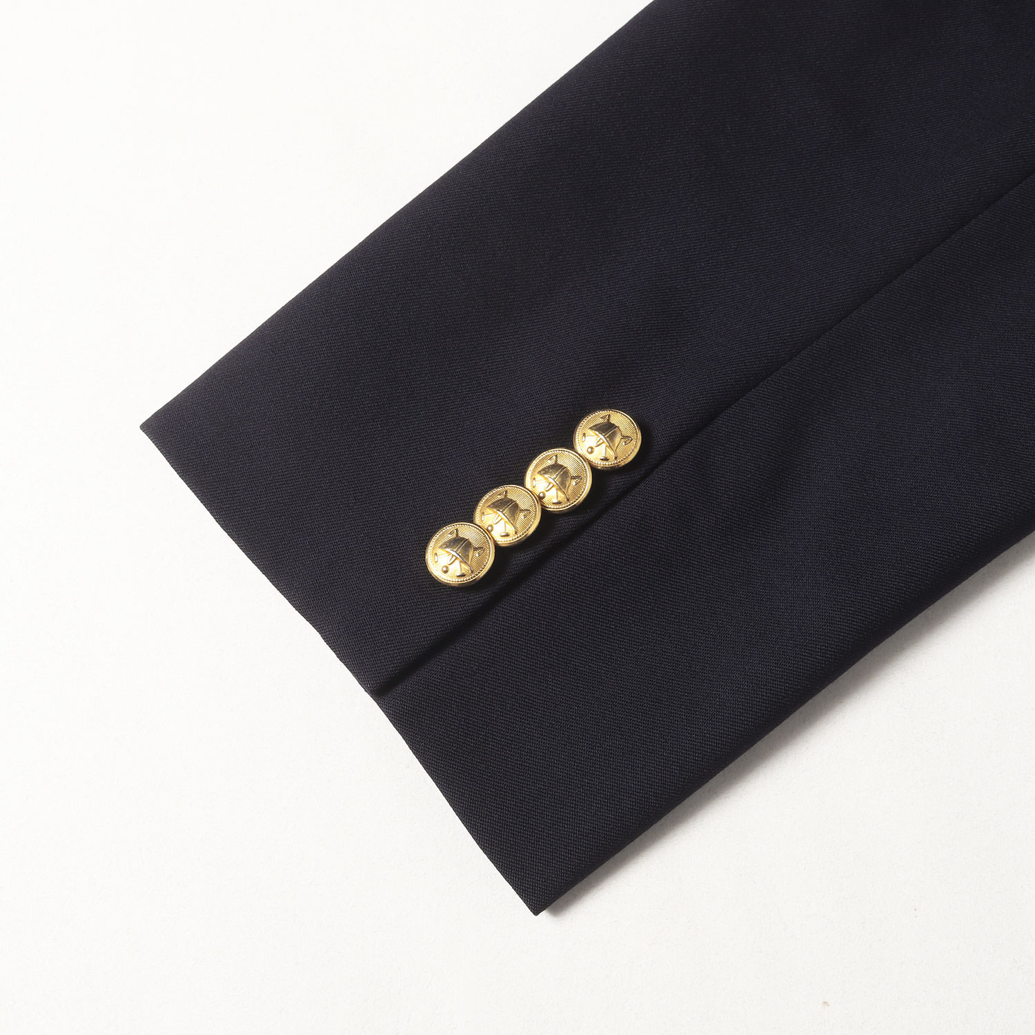 | 商品説明 | ・ウールツイル生地 ・金ボタン ・2つボタン ・ノッチドラペル ・サイドベンツ ・袖裏ストラップ柄 ・袖4つボタン開き見せ |