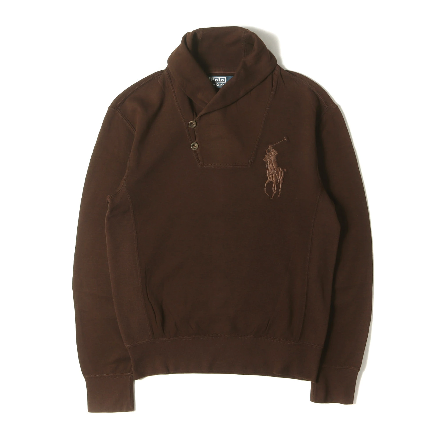 POLO Ralph Lauren Sweatshirt, Brown, Size Small | Suede Elbow Patch Shawl Collar Lightweight Sweatshirt | Men's Top, Sweatshirt, Pre-owned, Excellent Condition, K4616