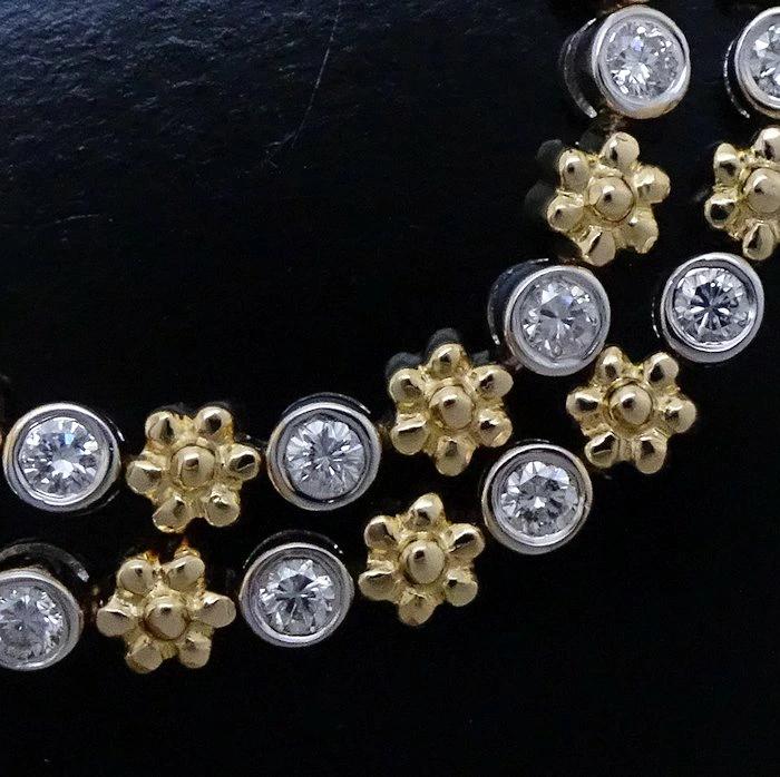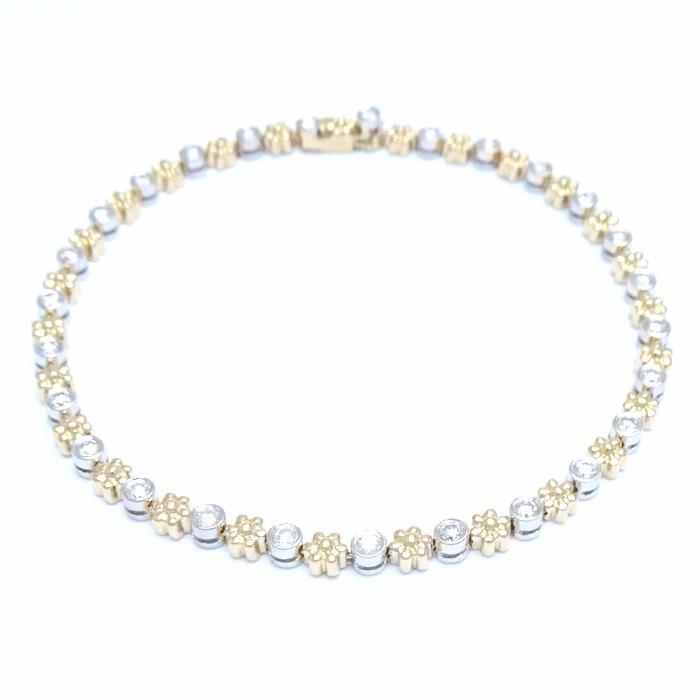 | 商品説明 | | 取扱店舗 | ミドリヤ本店 | | 状態 | 中古Aランク | | 素材 | K18YG イエローゴールド / K18WG ホワイトゴールド | | サイズ | 18cm [ダイヤ部分の幅]直径2.9ミリ [フラワー部分の幅]約3.4ミリ | | 重量 | 8.8g | | 付属品 | なし | | 備考 | ダイヤモンド 0.94ct