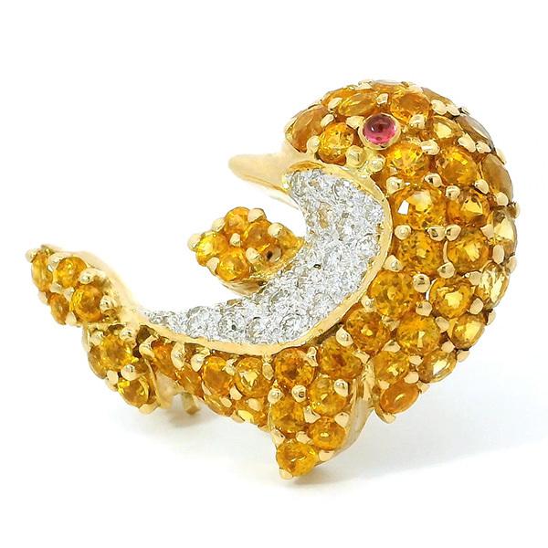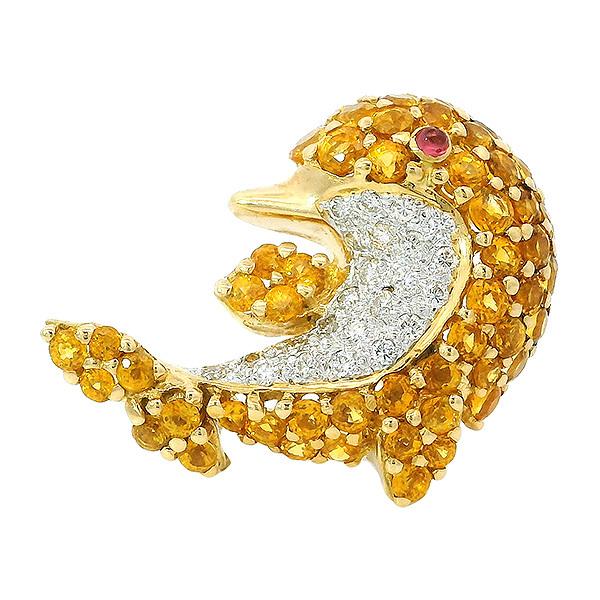 Product Name: Dolphin Brooch with 3.17ct Sapphire and 0.22ct Diamonds