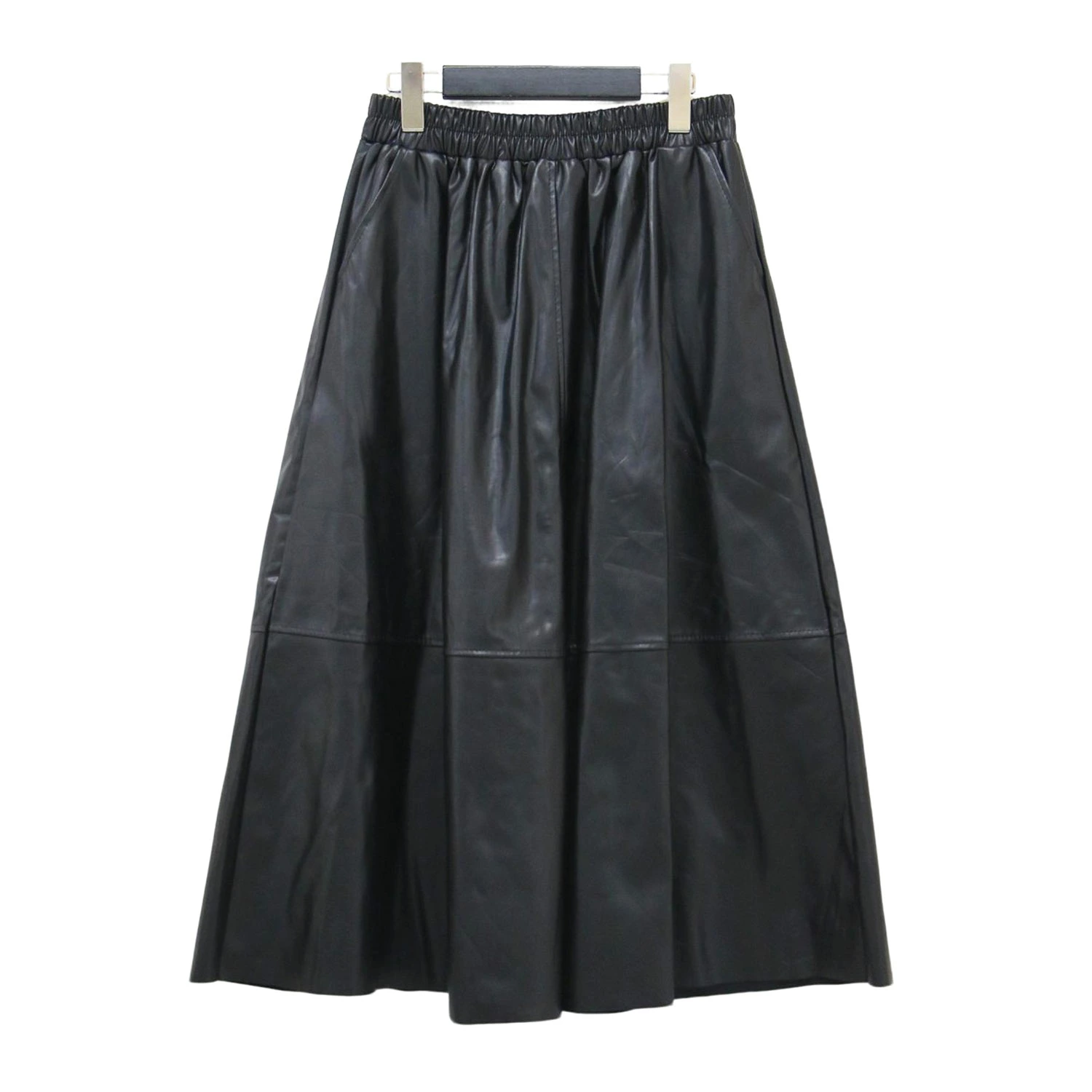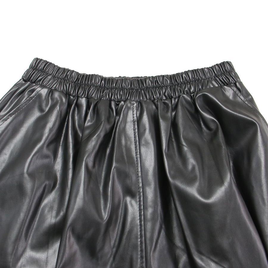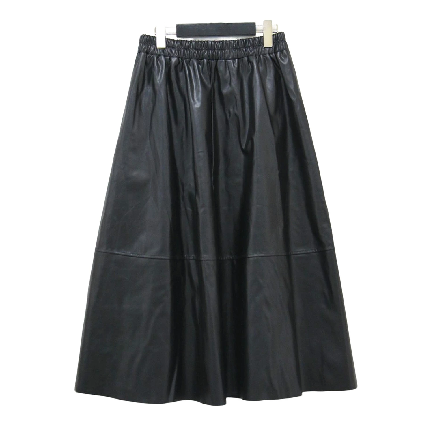 pool studio alivier Black Skirt | Eco-Leather A-Line Skirt | Flared Midi Skirt with Elastic Waist | Women's Bottoms | Pre-owned | Like New | K4647