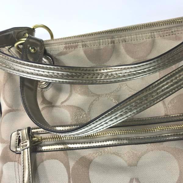 ☆キャンバス×メタリックで肩掛けもでき使いやすさ抜群です。外側にはファスナーポケット、内側にはファスナー付ポケットや携帯ポケットもついており収納性もバッチリです♪