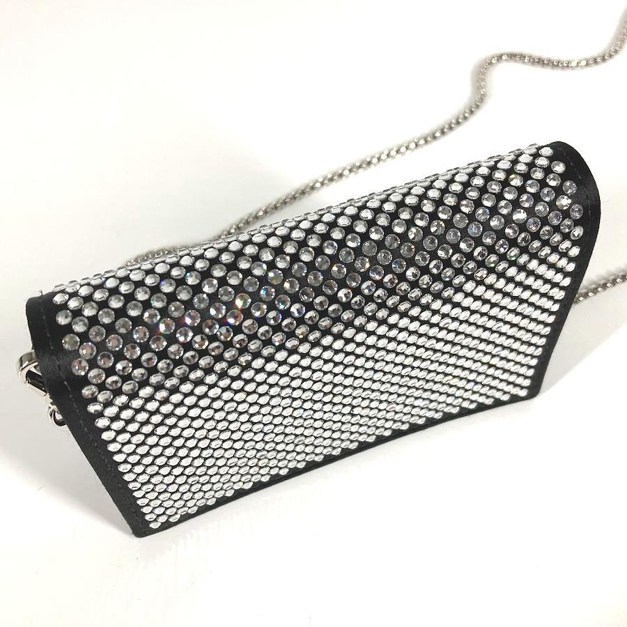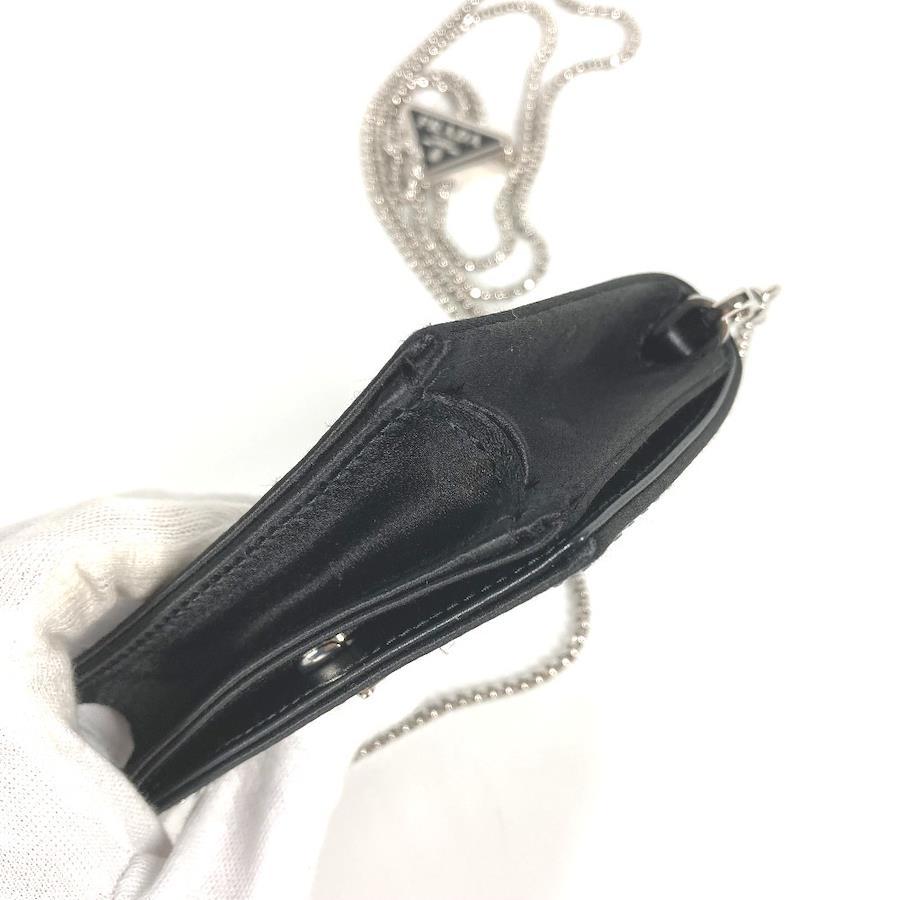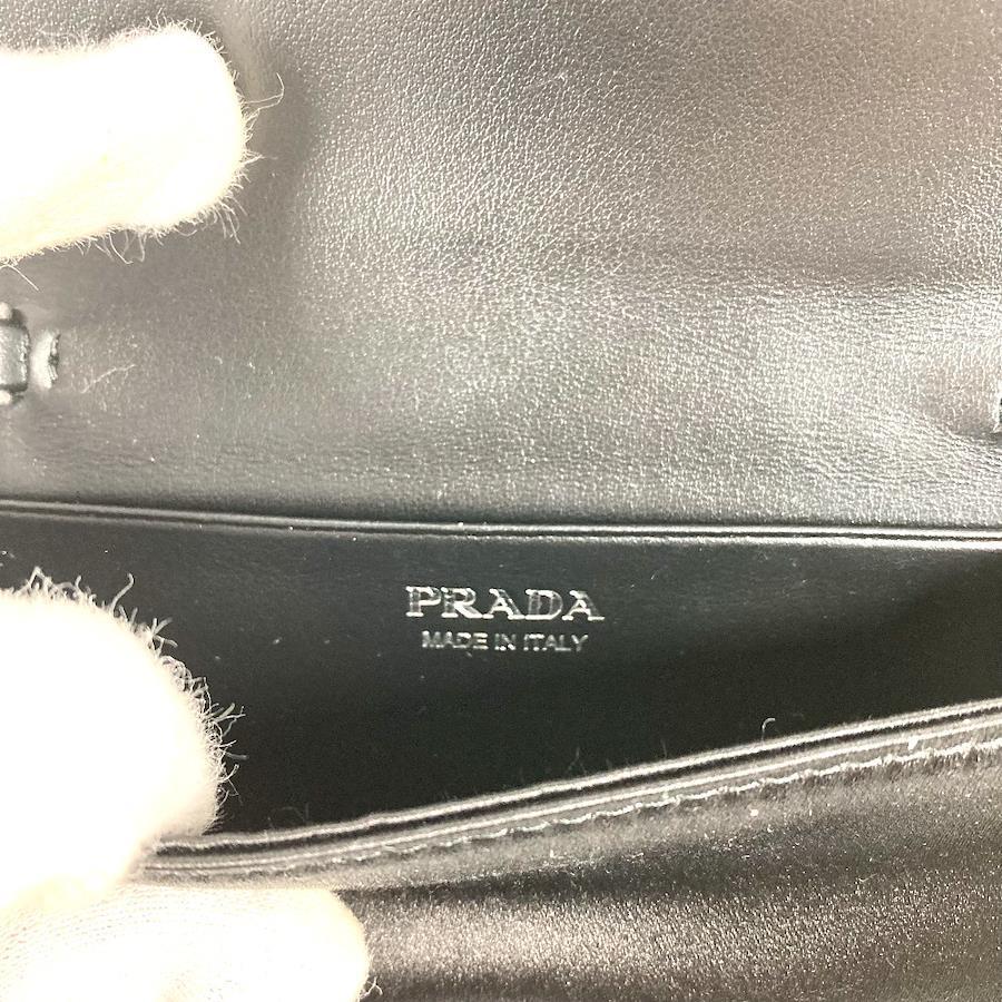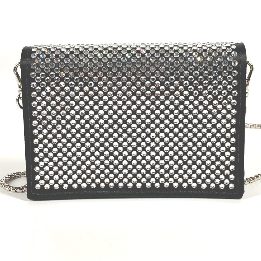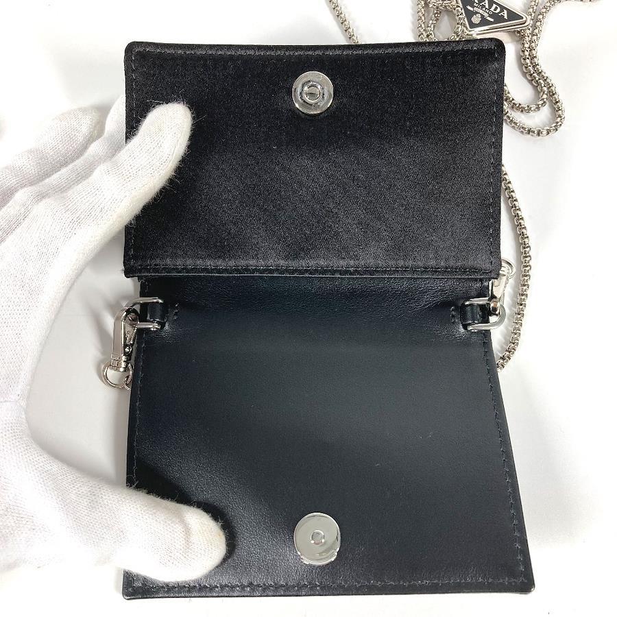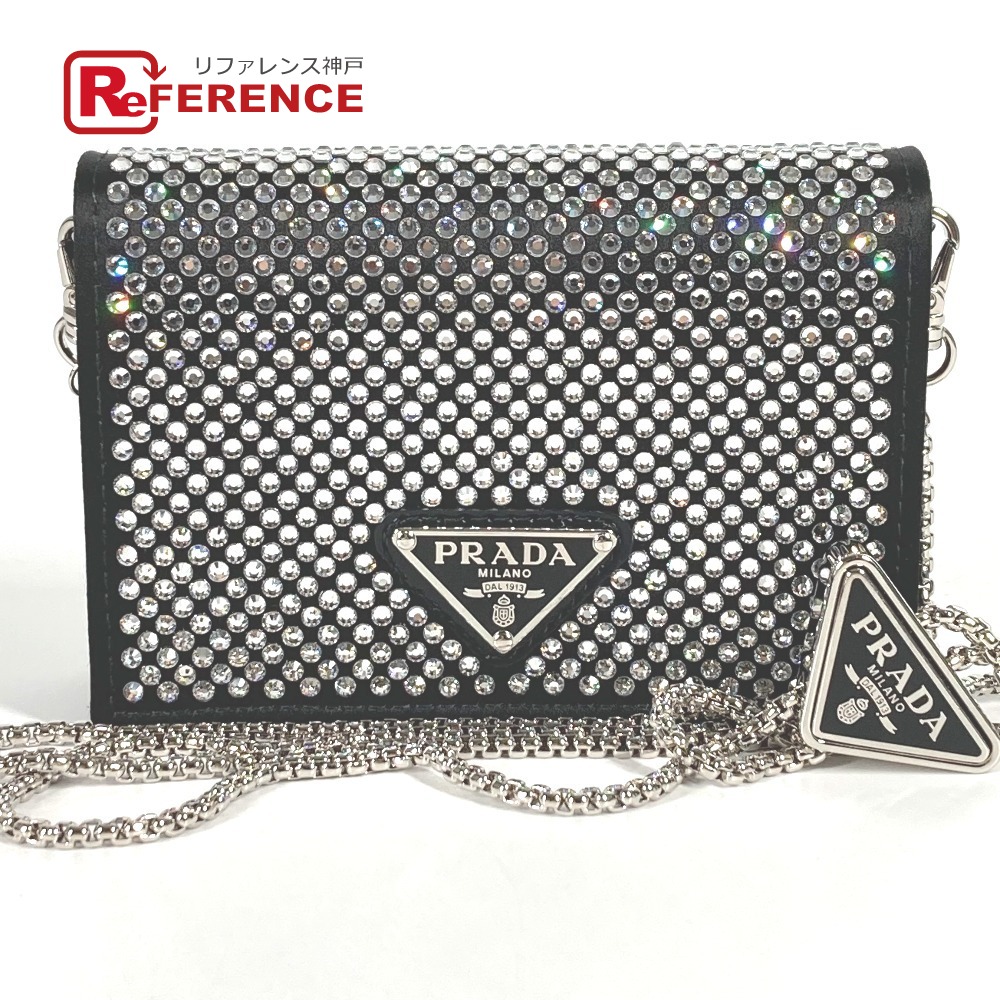 【商品説明】全体を覆うクリスタルが光の陰影と美しい輝きを生む、ラグジュアリーでありながら使い勝手に優れたサテンのカードケース。取り外し可能なチェーンのショルダーストラップ付で、さまざまな使い方でお楽しみいただけます。アイコニックなエナメルメタルのトライアングルロゴ付。