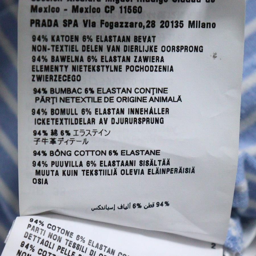 [モデル]23SS ボーダー総柄 トライアングルロゴプレート クルーネック 五分袖 クロップド ショート丈 Tシャツ カットソー トップス ブルー レディース 39578