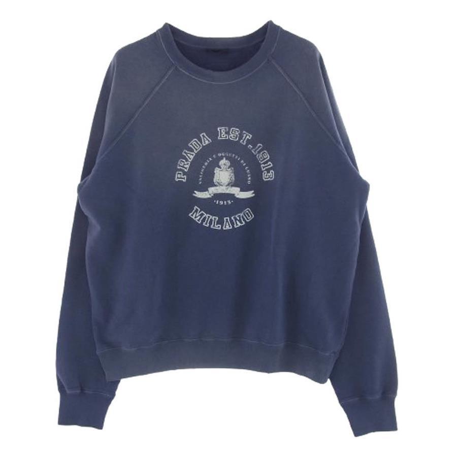 ネイビー系【モデル】カレッジロゴ ヴィンテージ加工 ニット三角ロゴ コットンフリース スウェット トレーナー
