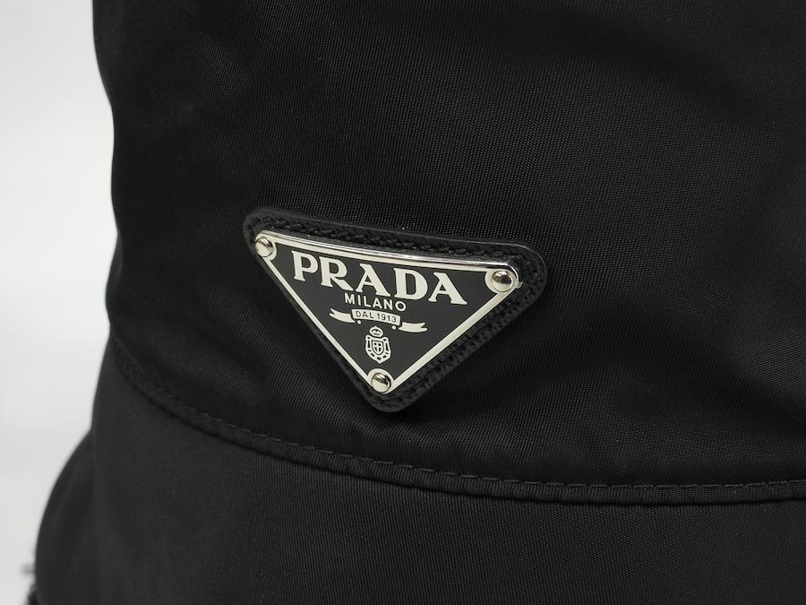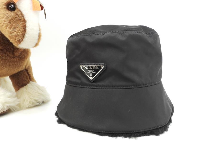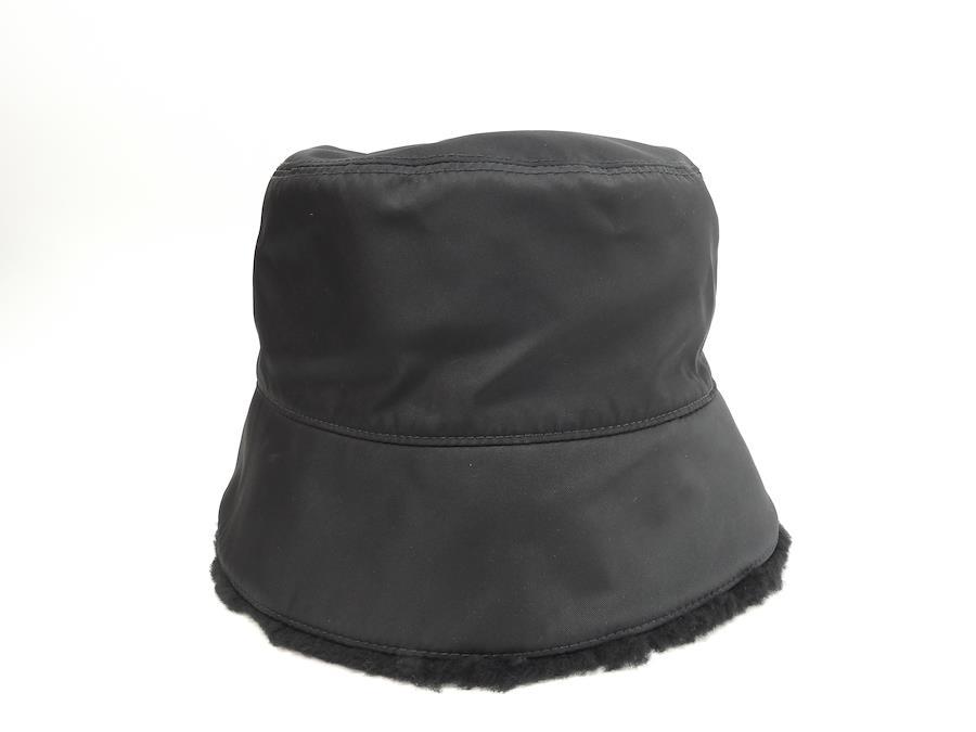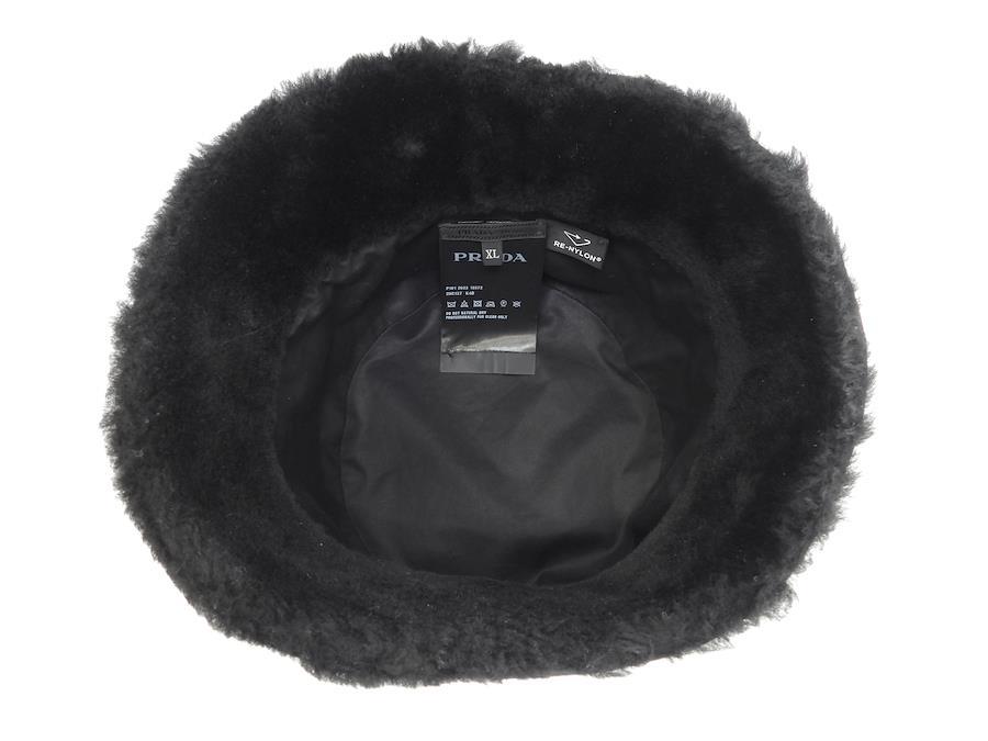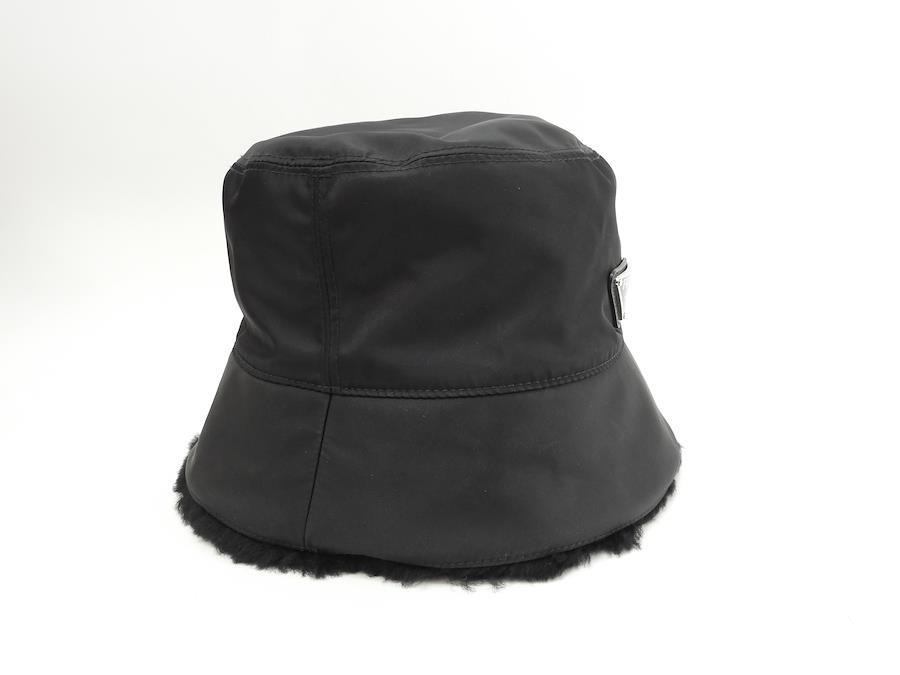 品名 : バゲットハット 帽子 ヘッドウォーマーメーカー: プラダ型番・素材: 2HC137 K4D F0002 テスート/ムートンライン・色: Re-Nylon 三角ロゴプレート 黒 シルバー金具参考定価 : 165000円サイズ : W26 x H14 x D26 cm XL 頭周60cm製造番号 : 131総重量 : 120g 本体重量 : 120g付属品 : なし