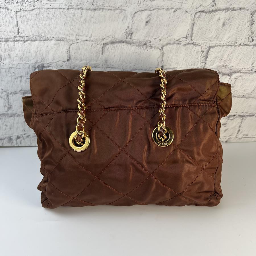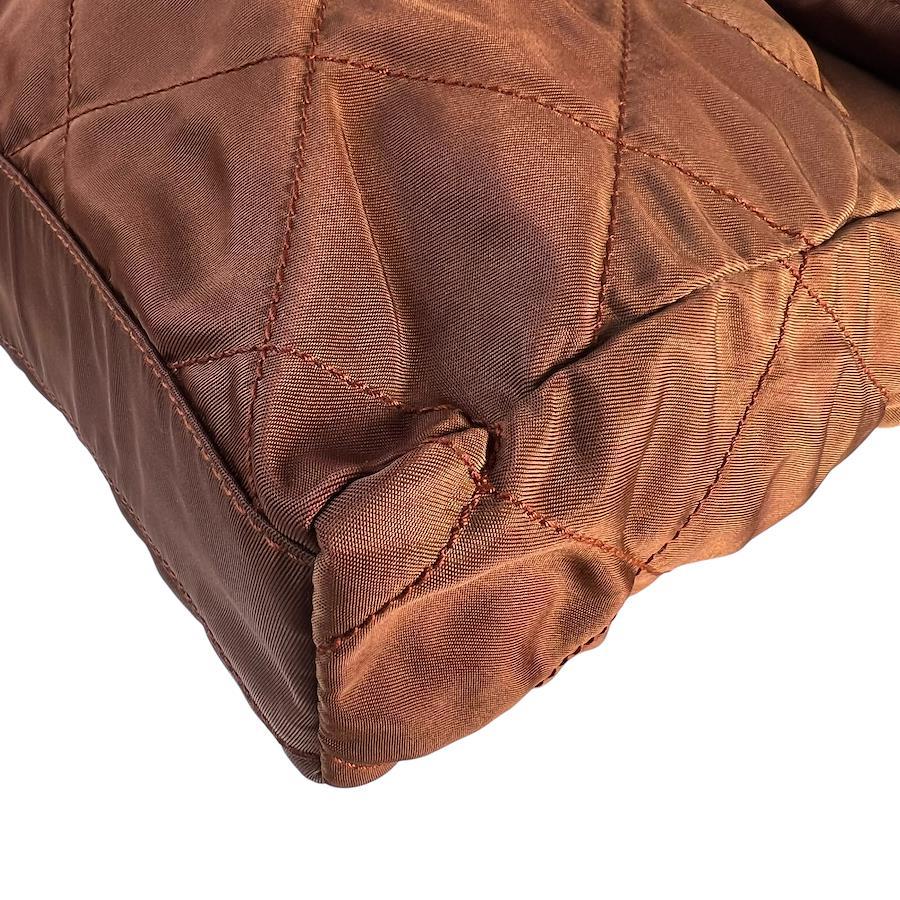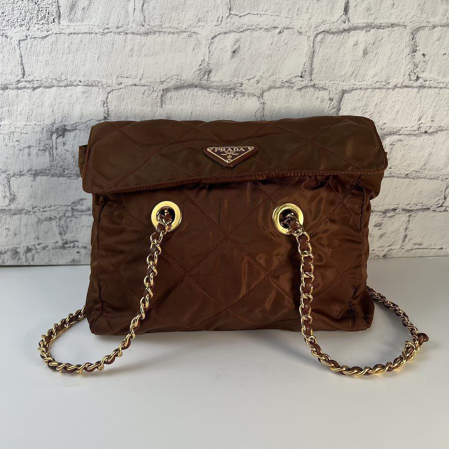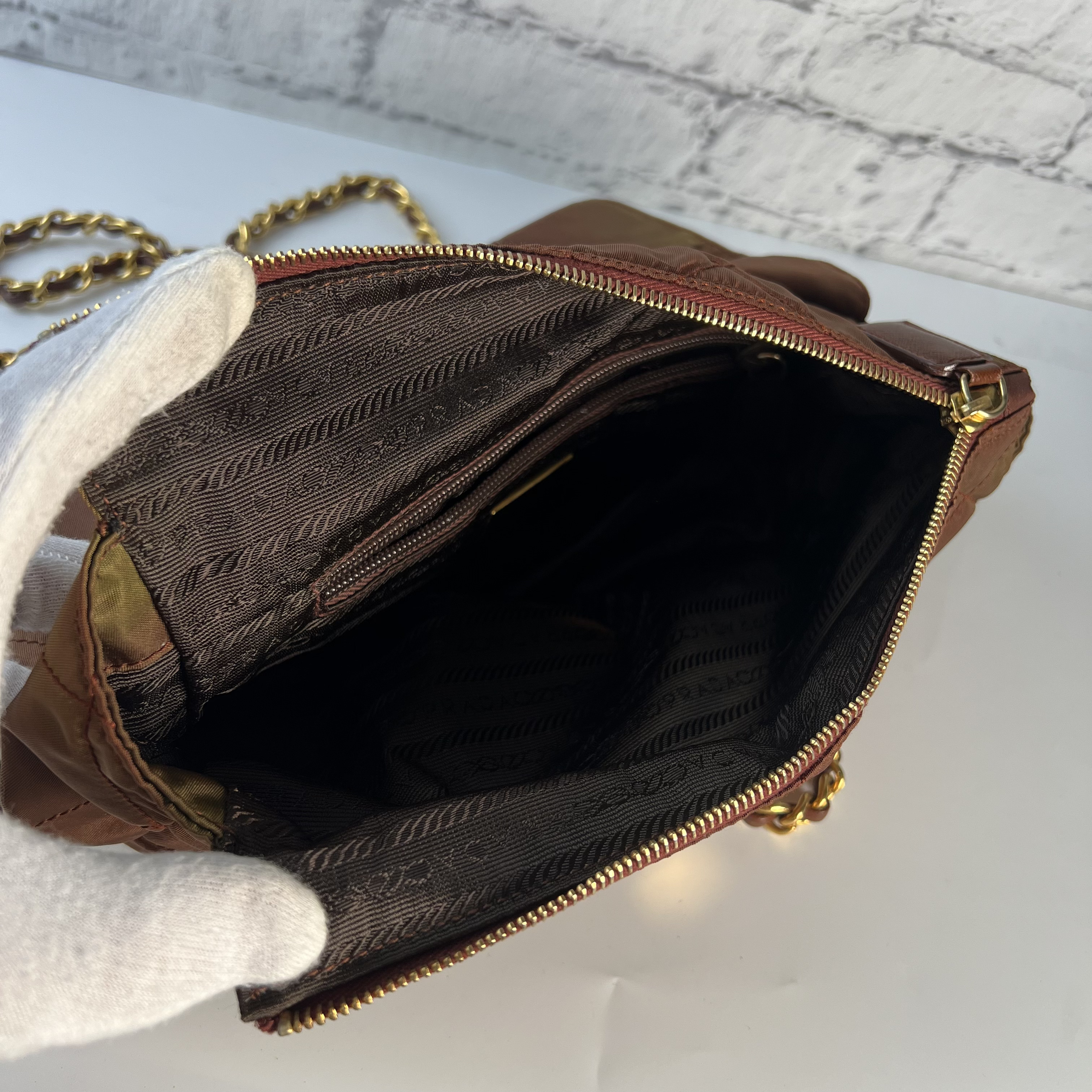 美品 PRADA プラダ ダブルチェーン ナイロンキルティング ショルダーバッグ ブラウン A-8134