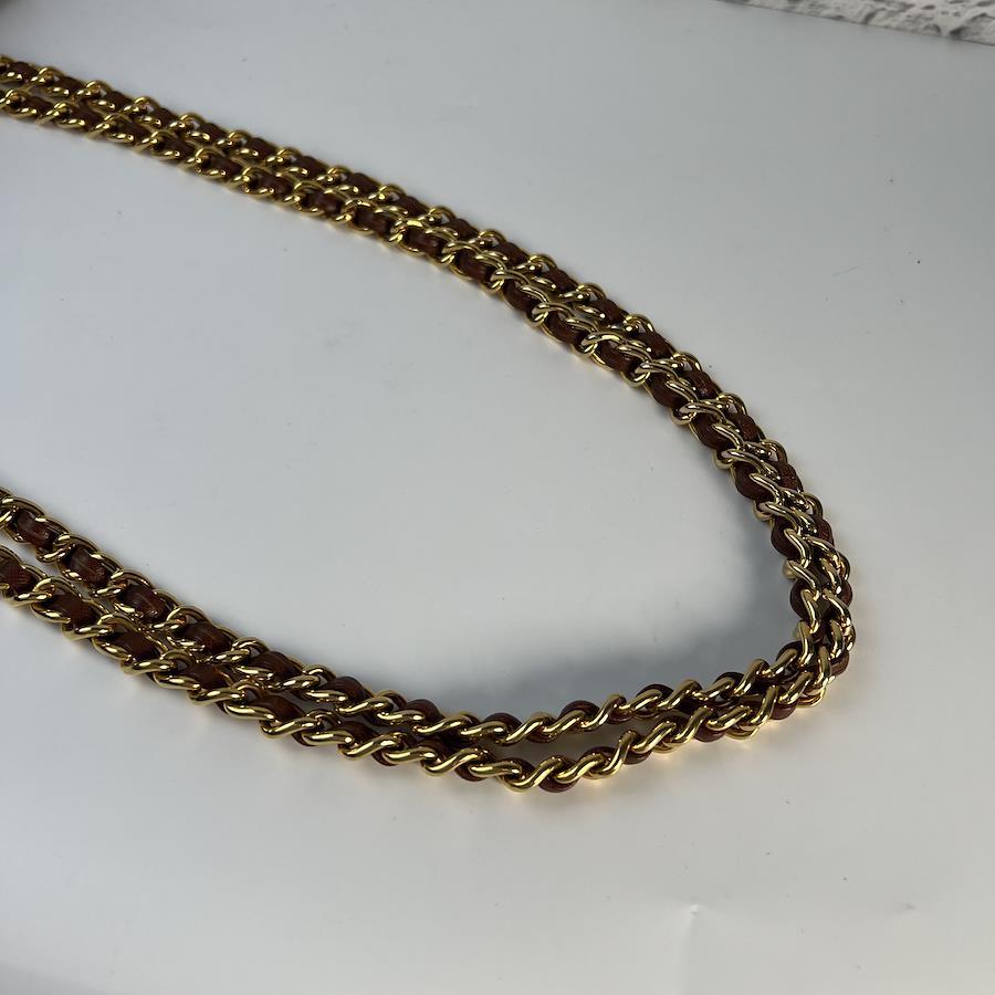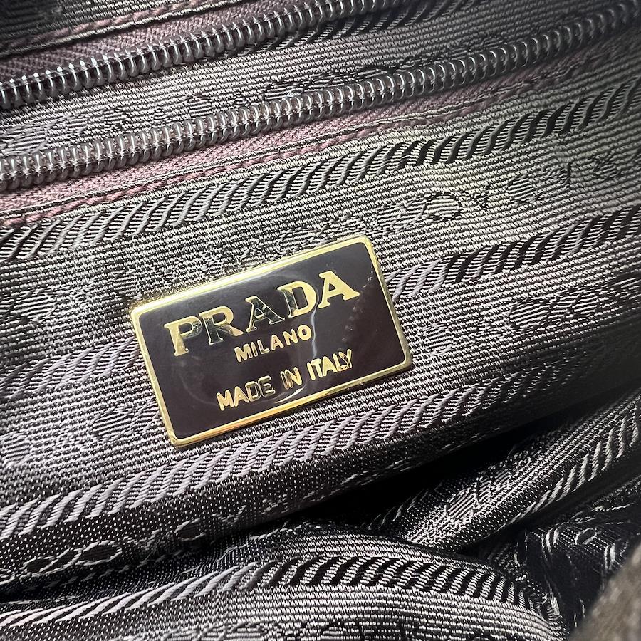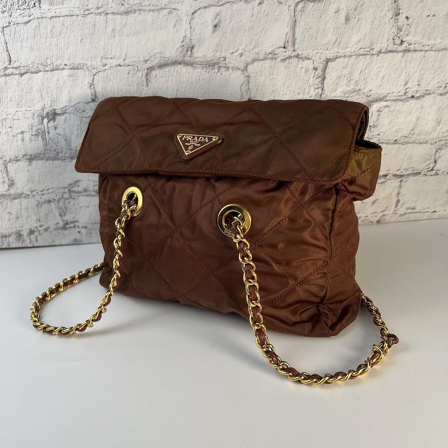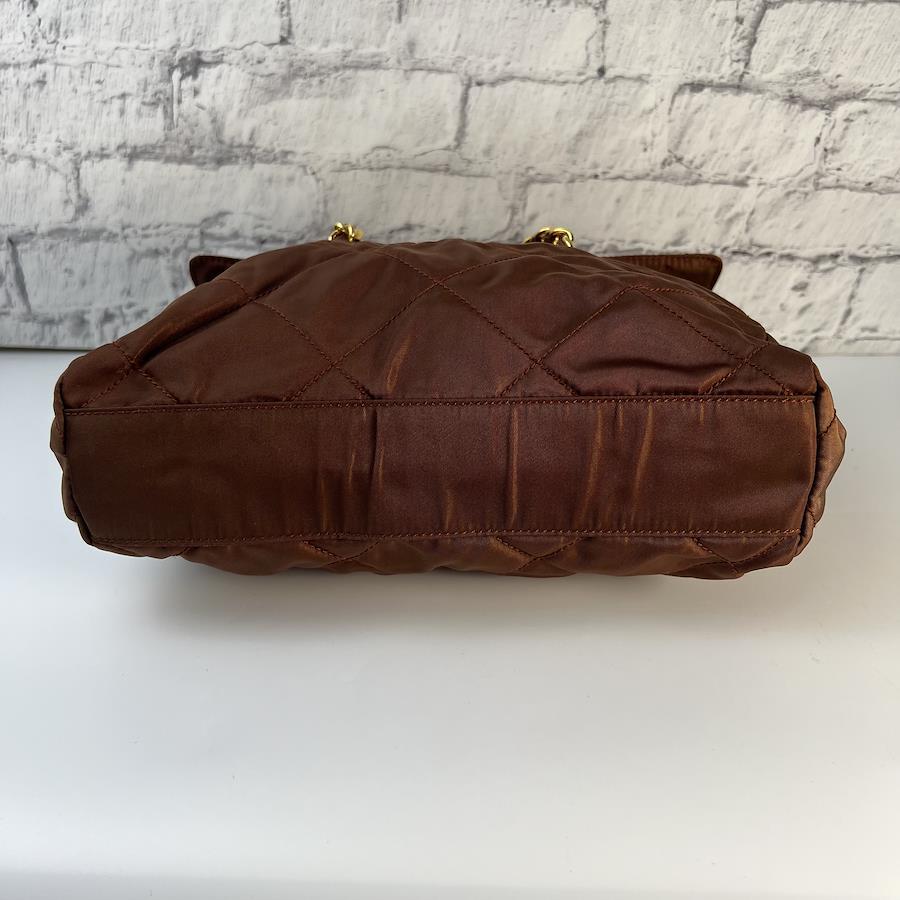 美品 PRADA プラダ ダブルチェーン ナイロンキルティング ショルダーバッグ ブラウン A-8134