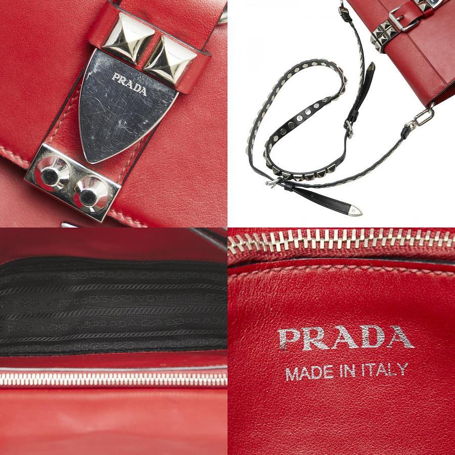 ■商品情報[管理番号]1-0197015[ブランド]プラダ(PRADA)[対象]レディース[カラー] レッド[シリーズ]エレクトラ スタッズ[素材]レザー サフィアーノ[サイズ]W約23cmxH約17.5cmxD約5cmショルダー高さ:約~58cm開閉式:ロック金具内側:オープンポケットx1、ファスナーポケットx1[付属品]付属品なし[状態・コンディション]ランク B全体コンディション詳細:外側⇒スレ・キズ・ペン跡サイド⇒スレ・コバひび割れ底面⇒角スレ・型崩れショルダー⇒Dカン付近にはがれ・コバひび割れ・金具跡金具⇒スレ・キズフラップ・付け根・裏⇒スレ内側⇒スレ・アタリ跡・薄汚れ