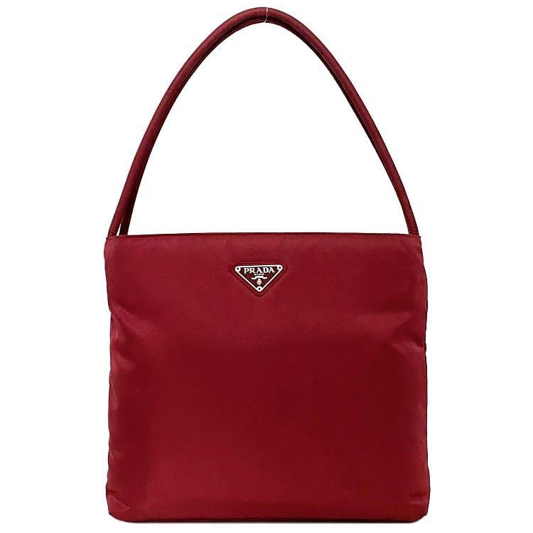 Prada Handbag Bordeaux Testuto Good Condition Tote Bag Nylon Used PRADA Light Shoulder Bag Vintage Triangle Logo Plate Standard Popular Women