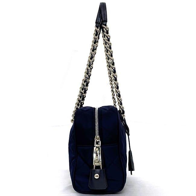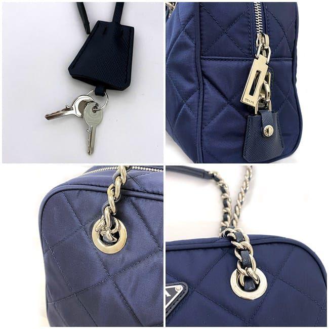 コメント:シルバーチェーンのハンドルが付いたショルダーバッグ。鍵付きで貴重品を守ります。程よいサイズ感で使い勝手の良いお品物です。
