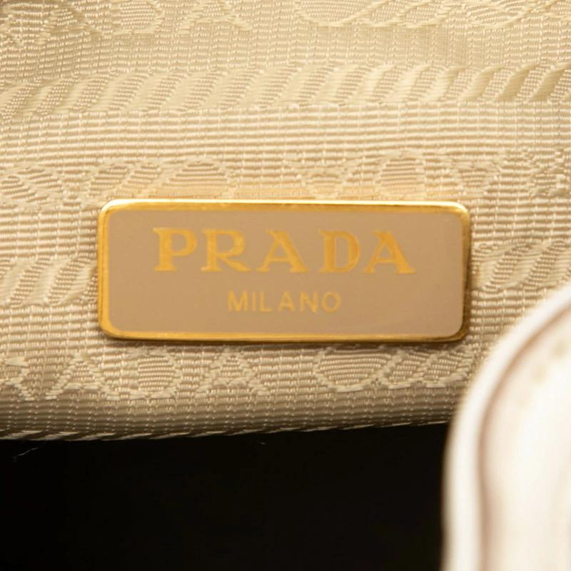 - プラダ ロゴジャガード ハンドバッグ ショルダーバッグ 2WAY 巾着型 1BH038 ベージュ ホワイト キャンバス レザー レディース PRADA 【中古】