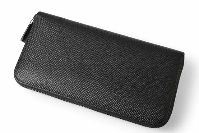 プラダより、機能的な長財布です。PRADA のロゴを象ったメタルプレートがアクセントになり高級感があります。