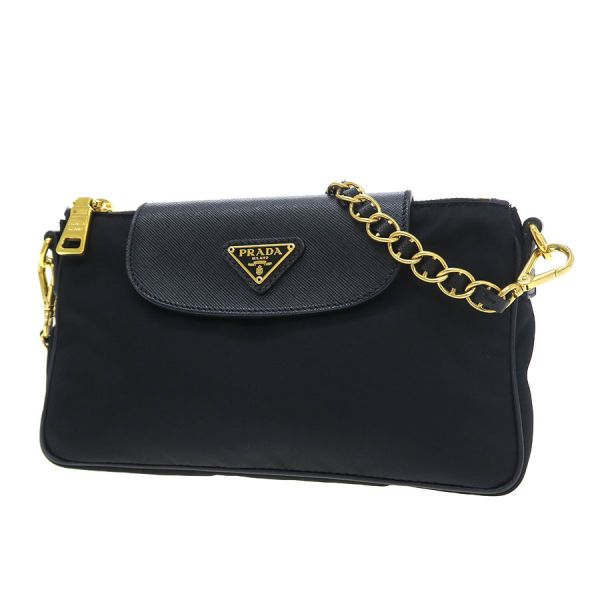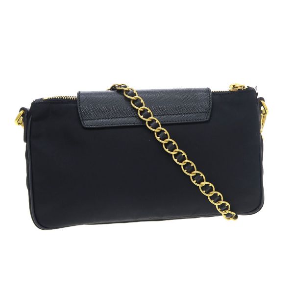 プラダ ナイロン・チェーンショルダープラダからカジュアルかつ高級感溢れる『ナイロン・チェーンショルダー』のご紹介です!プラダ定番のナイロン素材で軽量で使いやすく、フラップ部分はレザーとなっておりゴールドのチェーンショルダーとの組み合わせがカジュアルだけでなく高級感も感じさせます!間口はフラップでメイン間口はファスナーとなっており、正面にポケット、メイン間口にもファスナーポケットが備わっており収納分けの面でも◎ショルダーは調節不可約91cmとなっており、コンパクトなサイズ感で小さめのお財布、スマホ、ちょっとしたコスメが収納出来ます!状態はAランクとなっており、素材特有の本体の型崩れ、表面の擦れ感、金具部分の小傷、内部の擦れ感、香水臭が感じられます。目立った使用感、ダメージは抑えられた状態です。是非いかがでしょうか?※ギャランティカード欠品