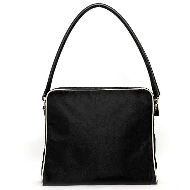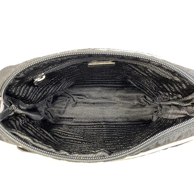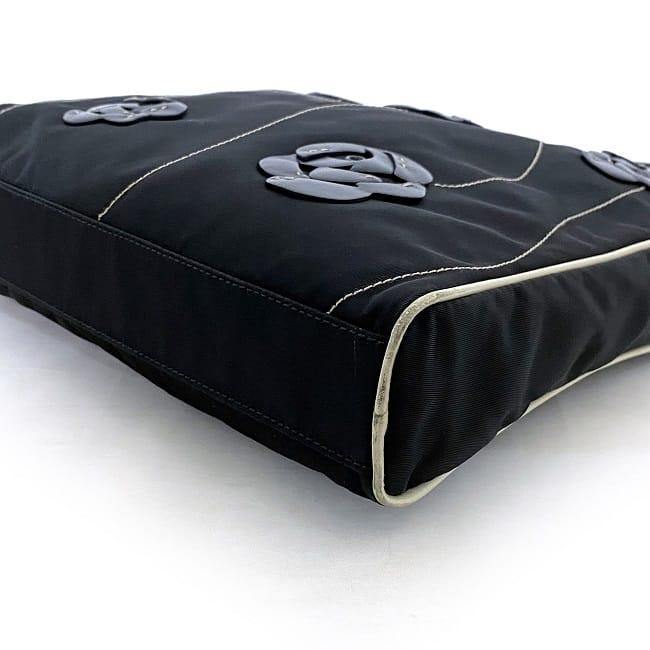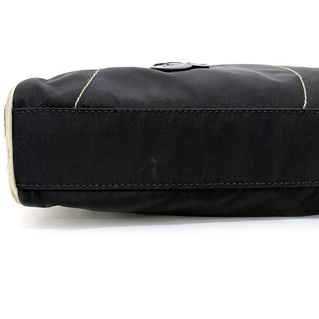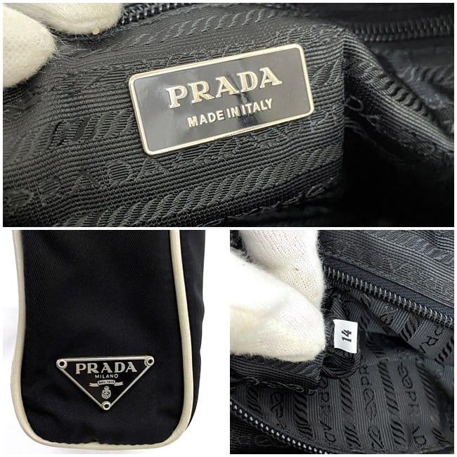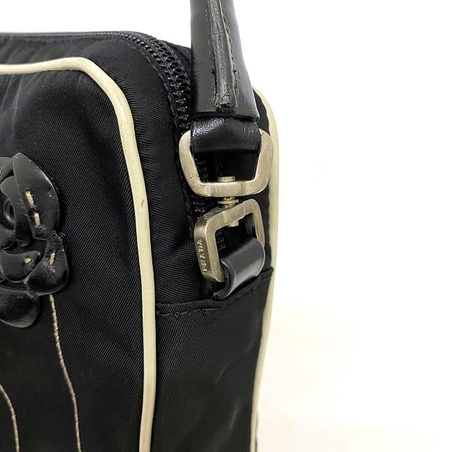 Prada One Shoulder Bag Black White Silver Tessuto Good Condition Flower Nylon Leather Used PRADA Handbag Flower Vintage