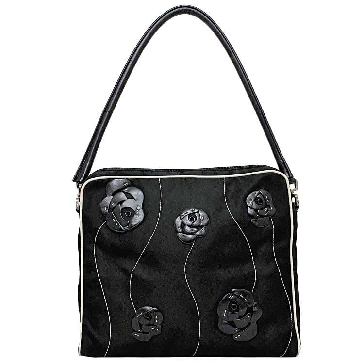 コメント:浮き出るような花デザインとステッチがお洒落な高級感溢れるバッグ。軽量のナイロン素材で作られた使い勝手の良いお品物です。